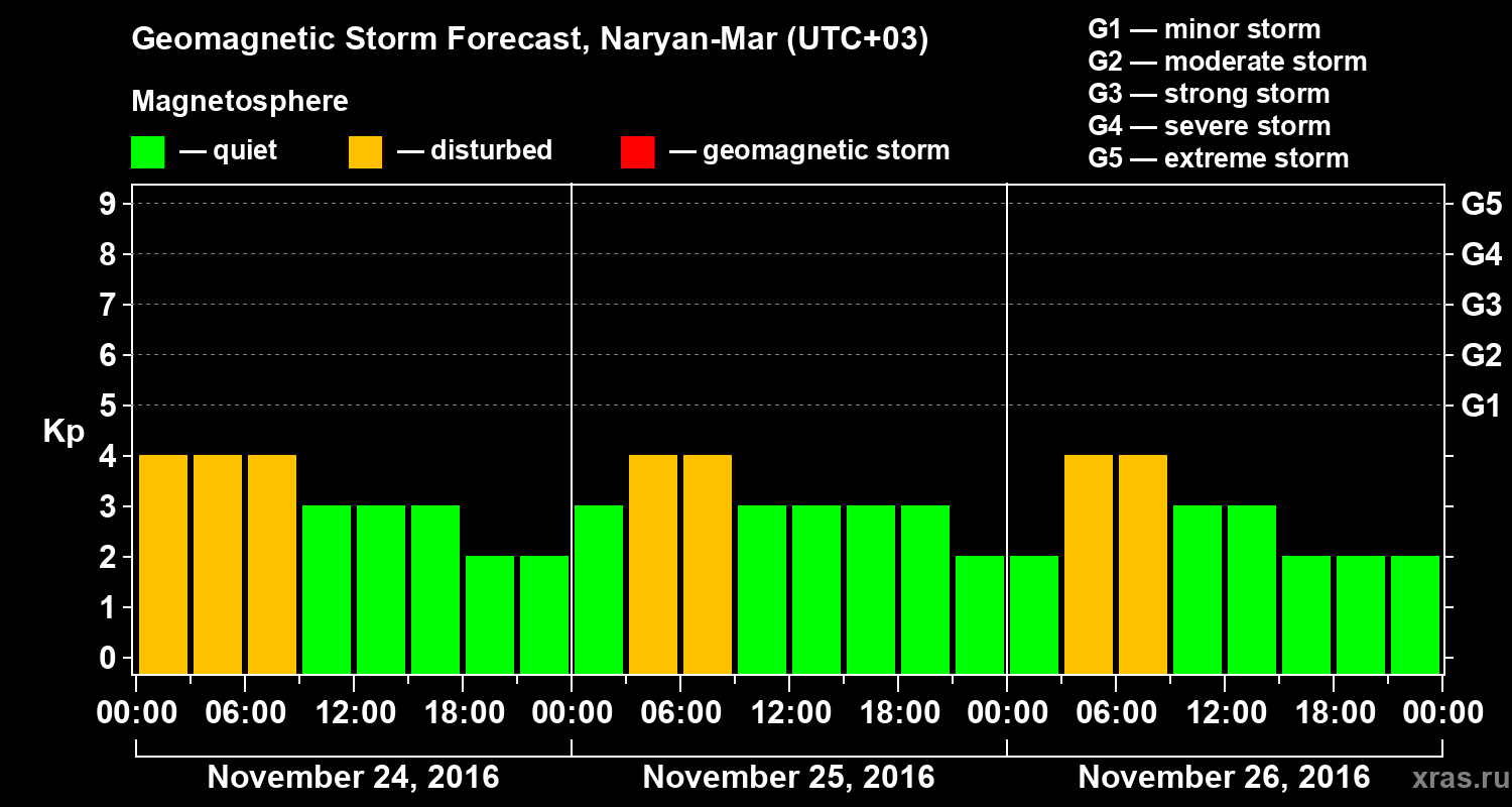 Geomagnetic activity forecast in Naryan-Mar — Nov 24, 2016