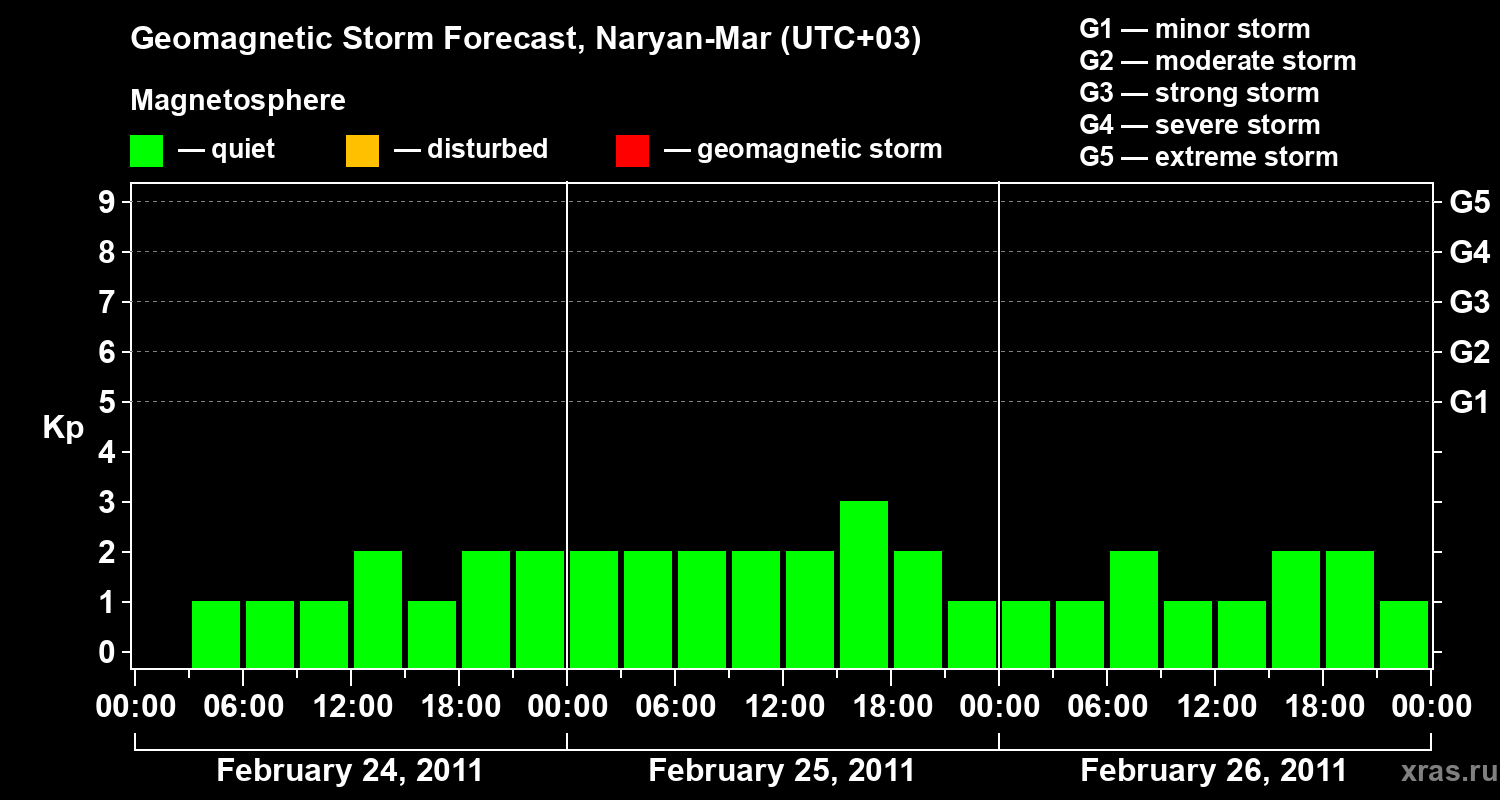 Geomagnetic storm forecast in Naryan-Mar for Feb 24, 2011