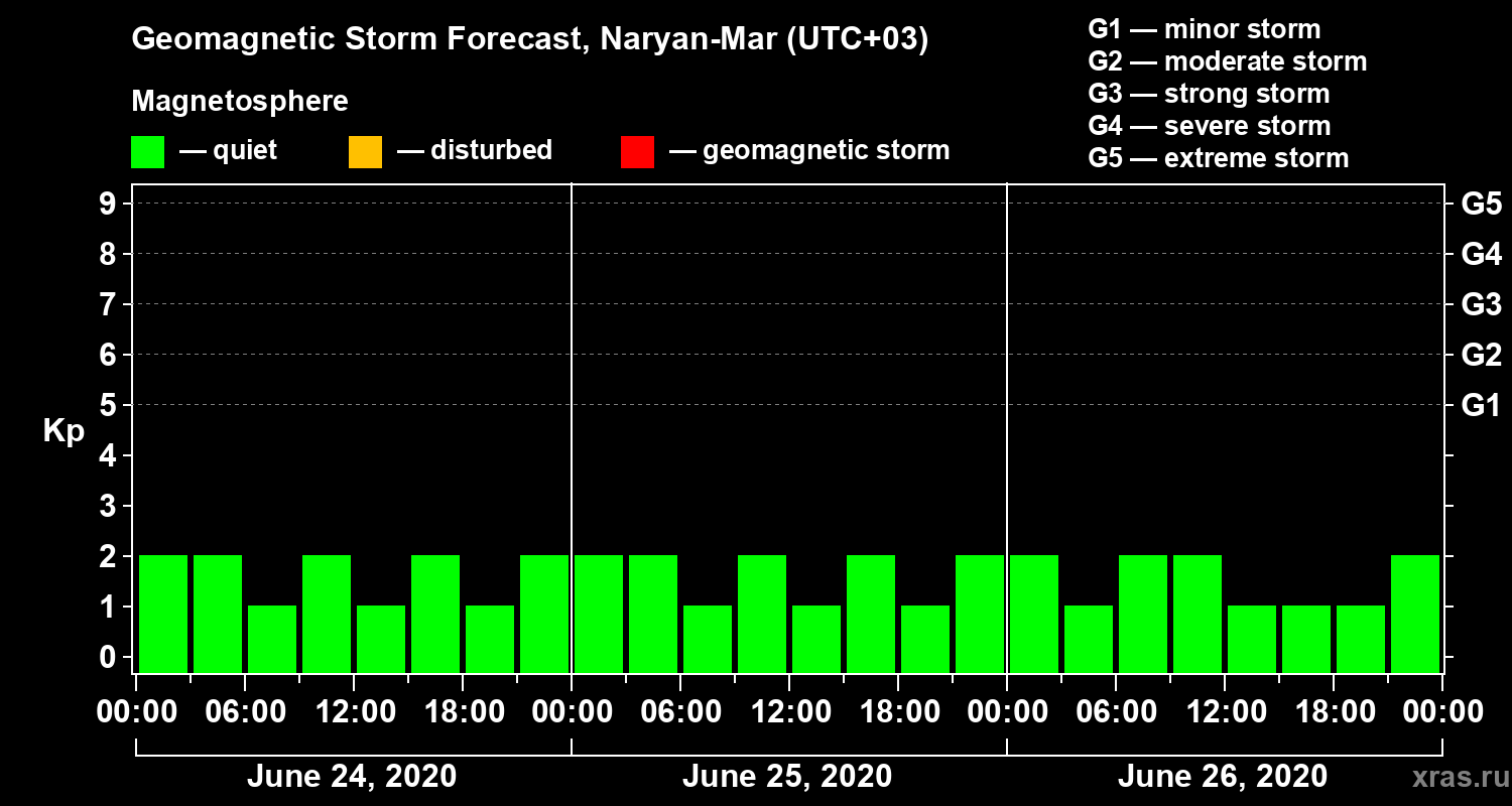 Geomagnetic activity forecast in Naryan-Mar — Jun 24, 2020