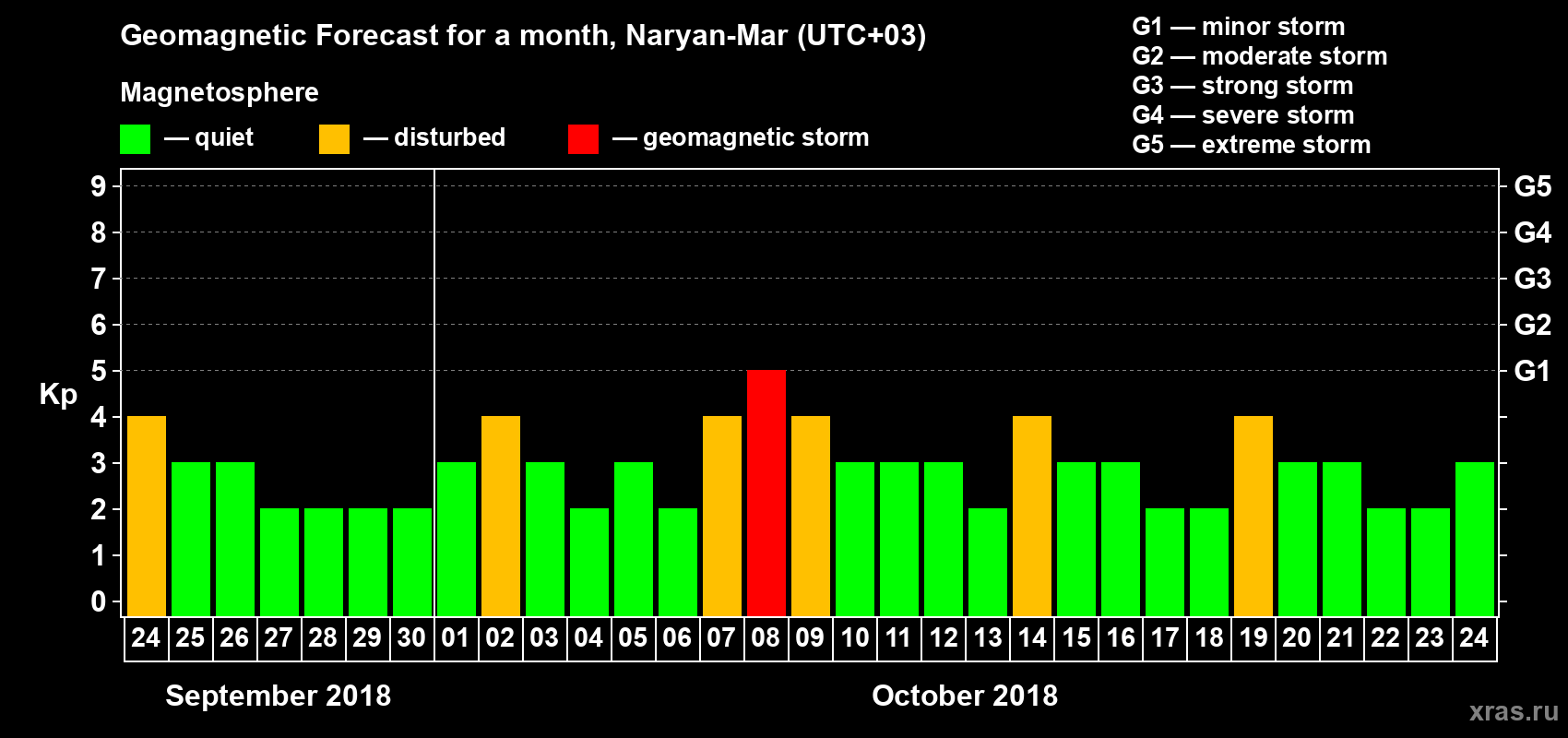 Geomagnetic activity forecast in Naryan-Mar — Sep 24, 2018