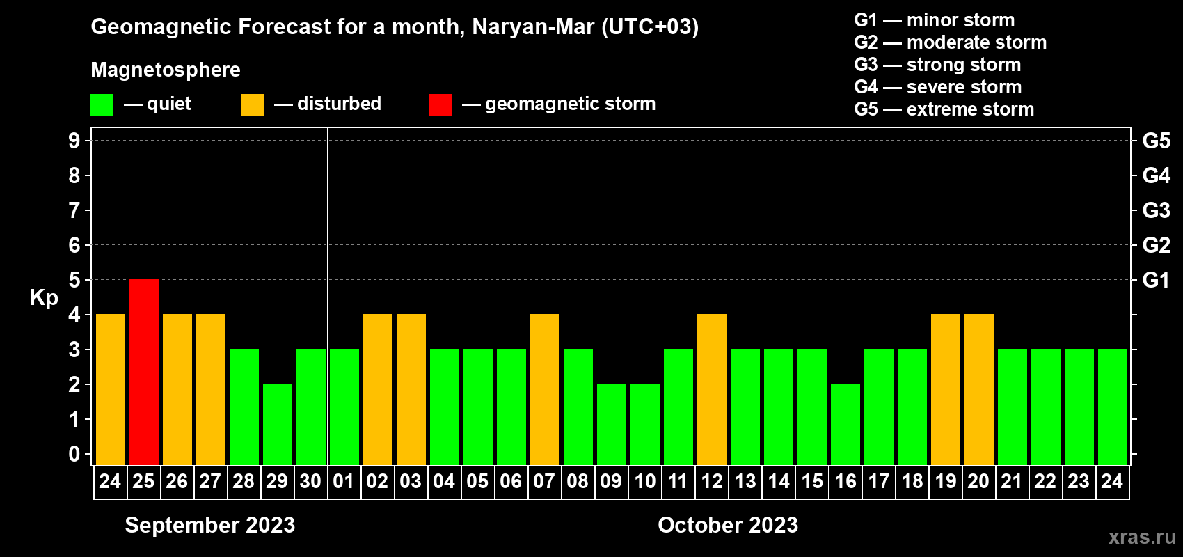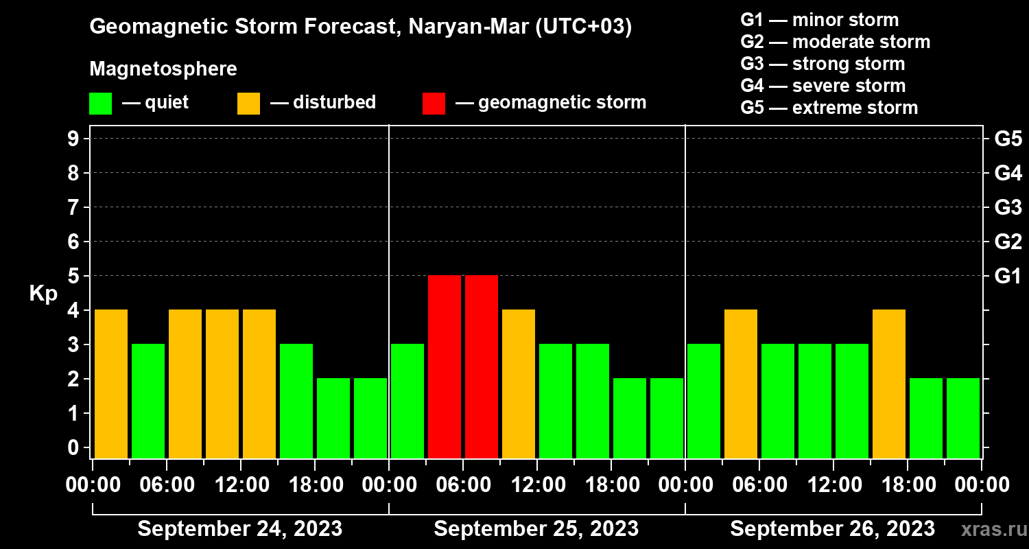 Geomagnetic activity forecast in Naryan-Mar — Sep 24, 2023