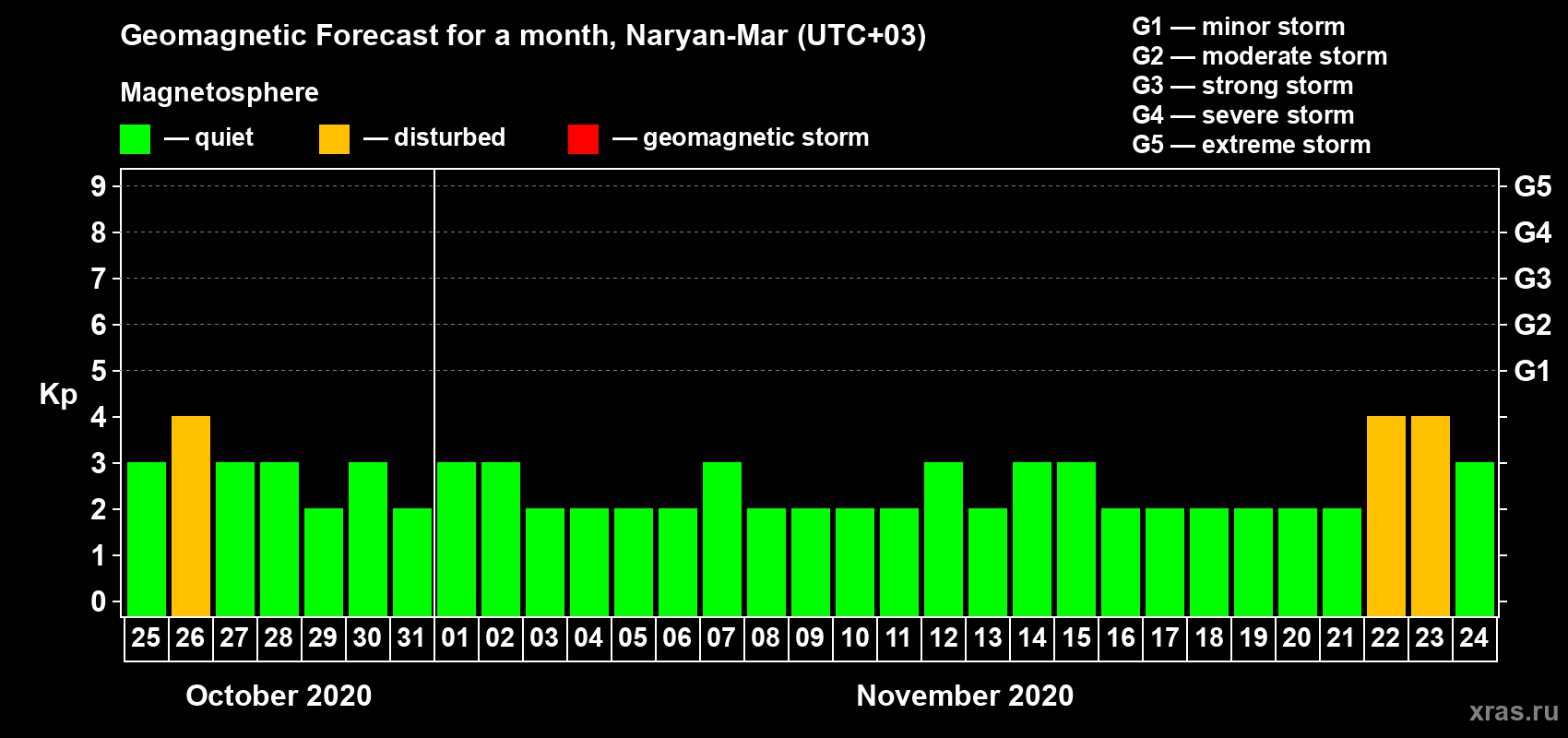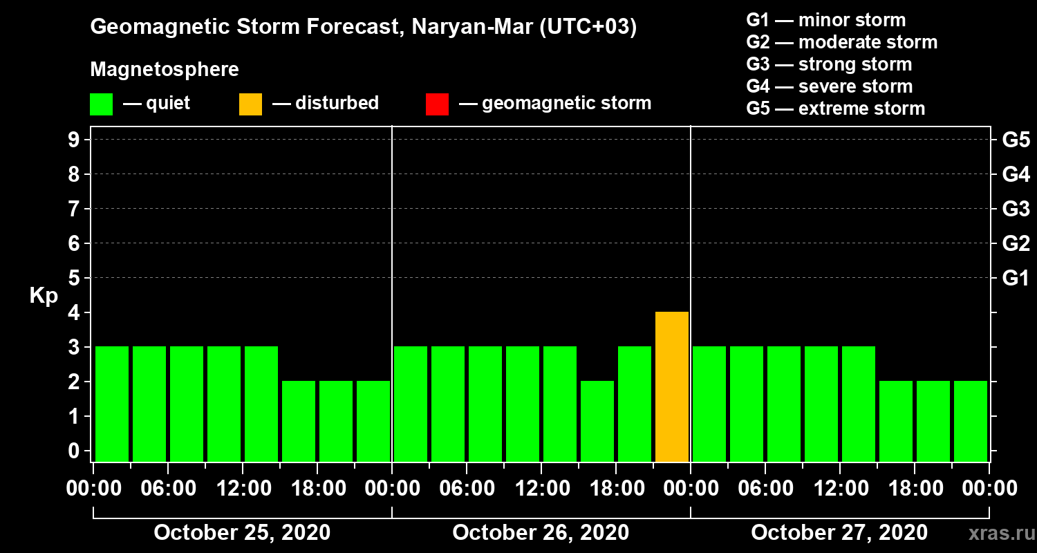 Geomagnetic activity forecast in Naryan-Mar — Oct 25, 2020