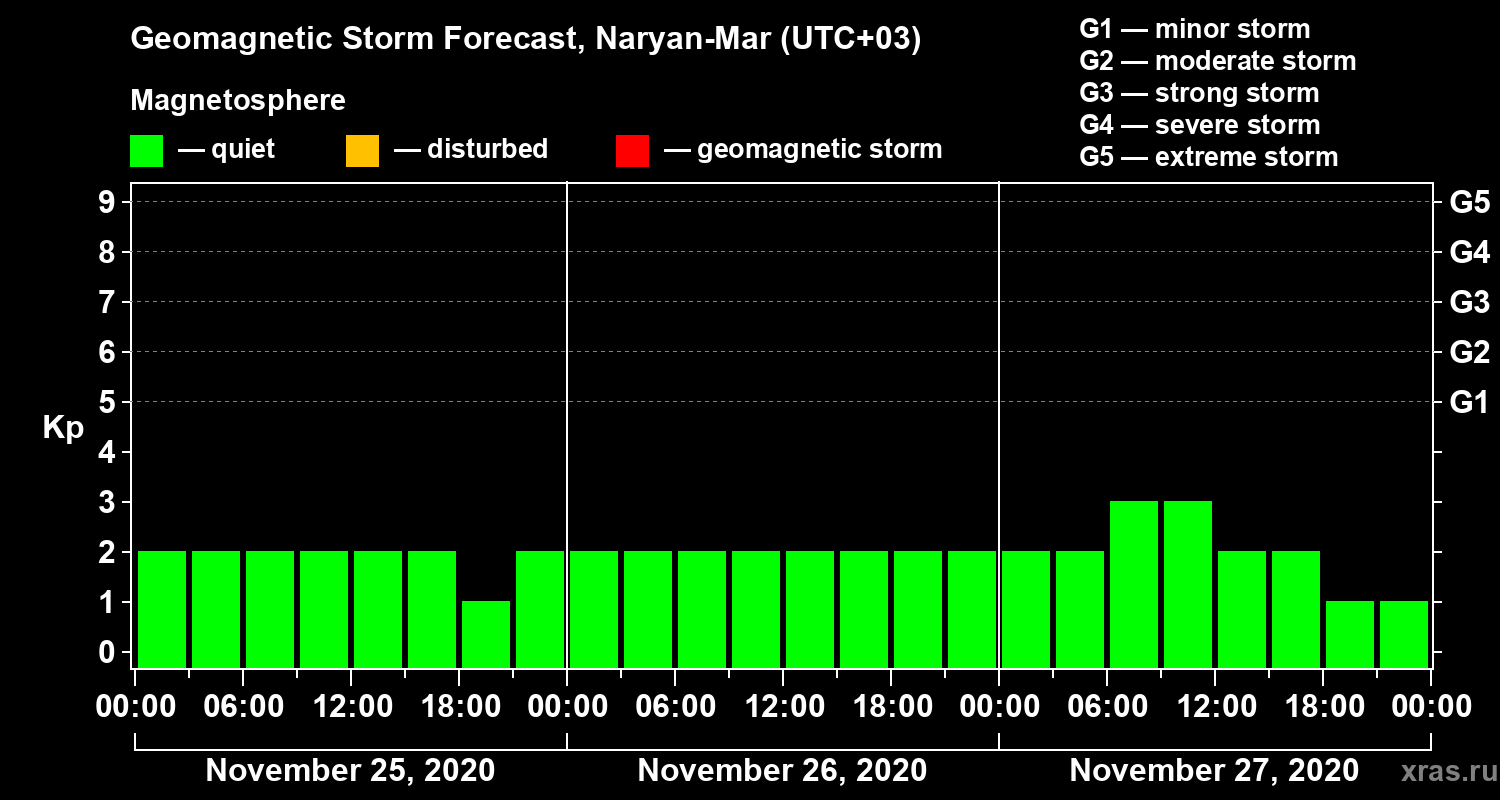 Geomagnetic activity forecast in Naryan-Mar — Nov 25, 2020