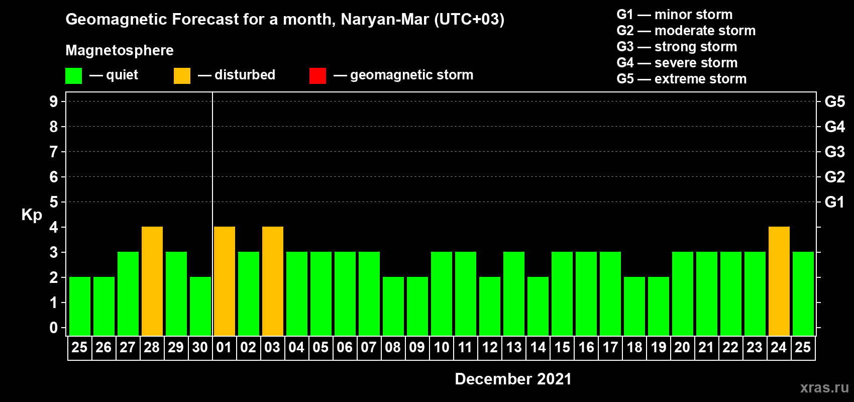 Geomagnetic activity forecast in Naryan-Mar — Nov 25, 2021