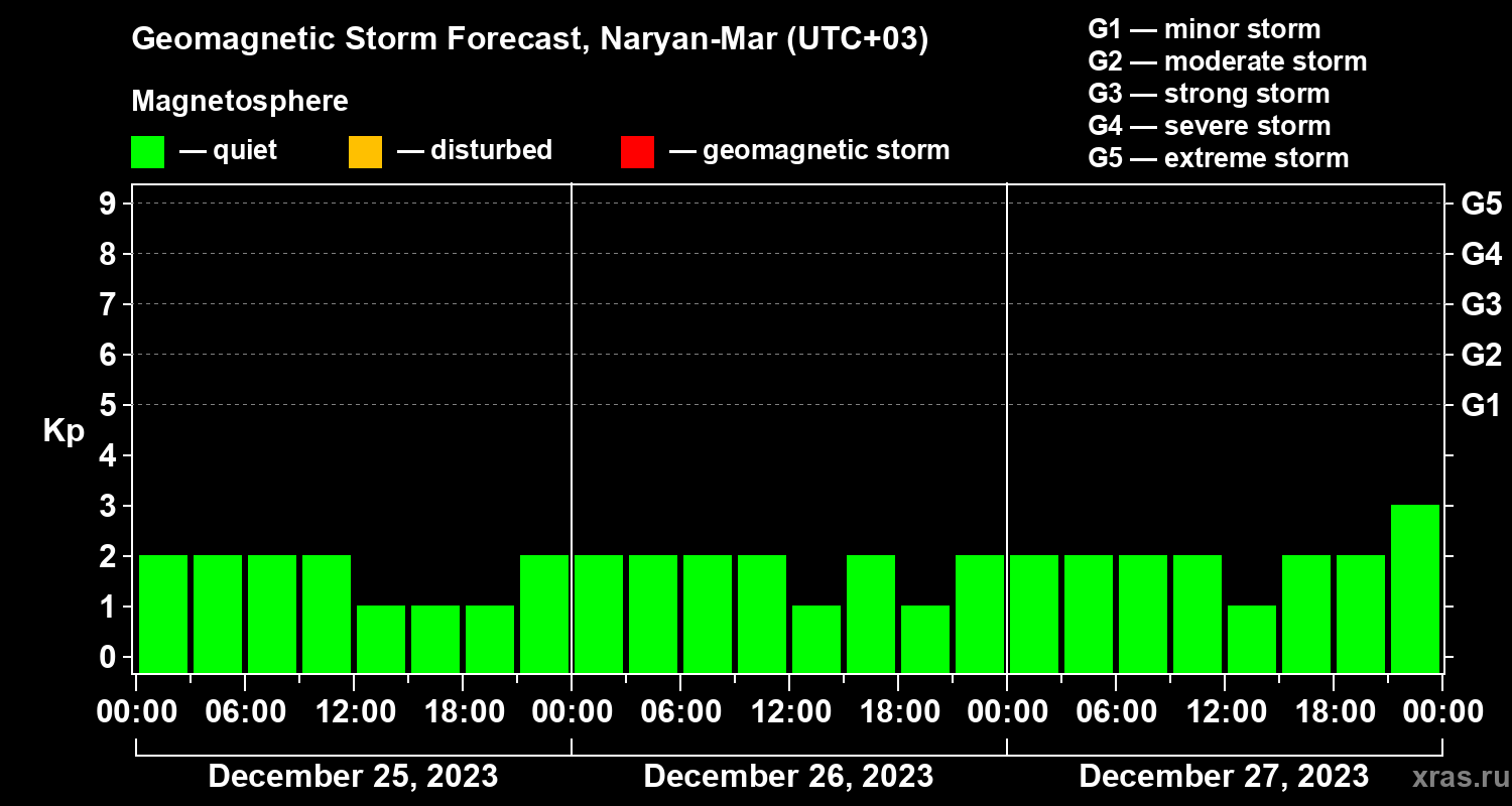 Geomagnetic activity forecast in Naryan-Mar — Dec 25, 2023