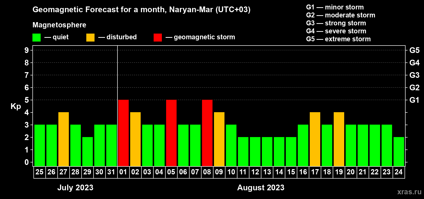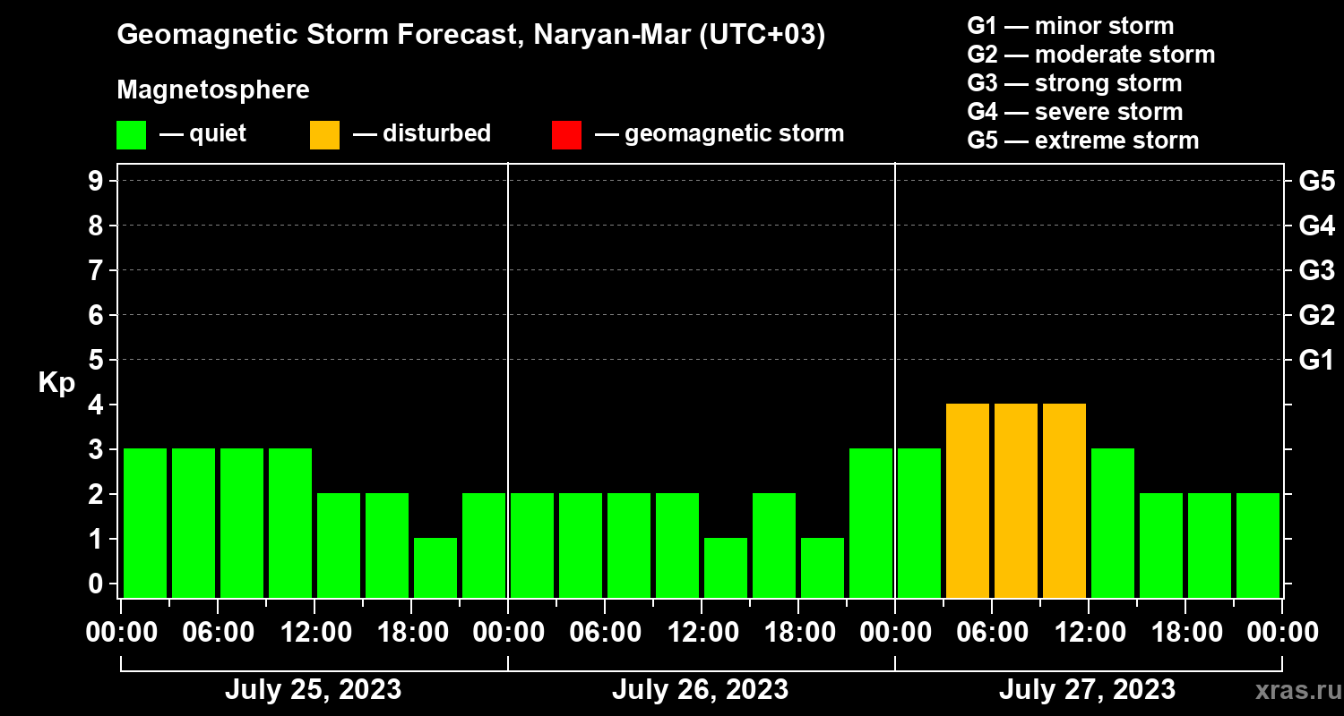 Geomagnetic activity forecast in Naryan-Mar — Jul 25, 2023
