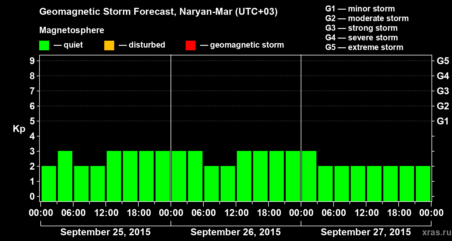 Geomagnetic activity forecast in Naryan-Mar — Sep 25, 2015