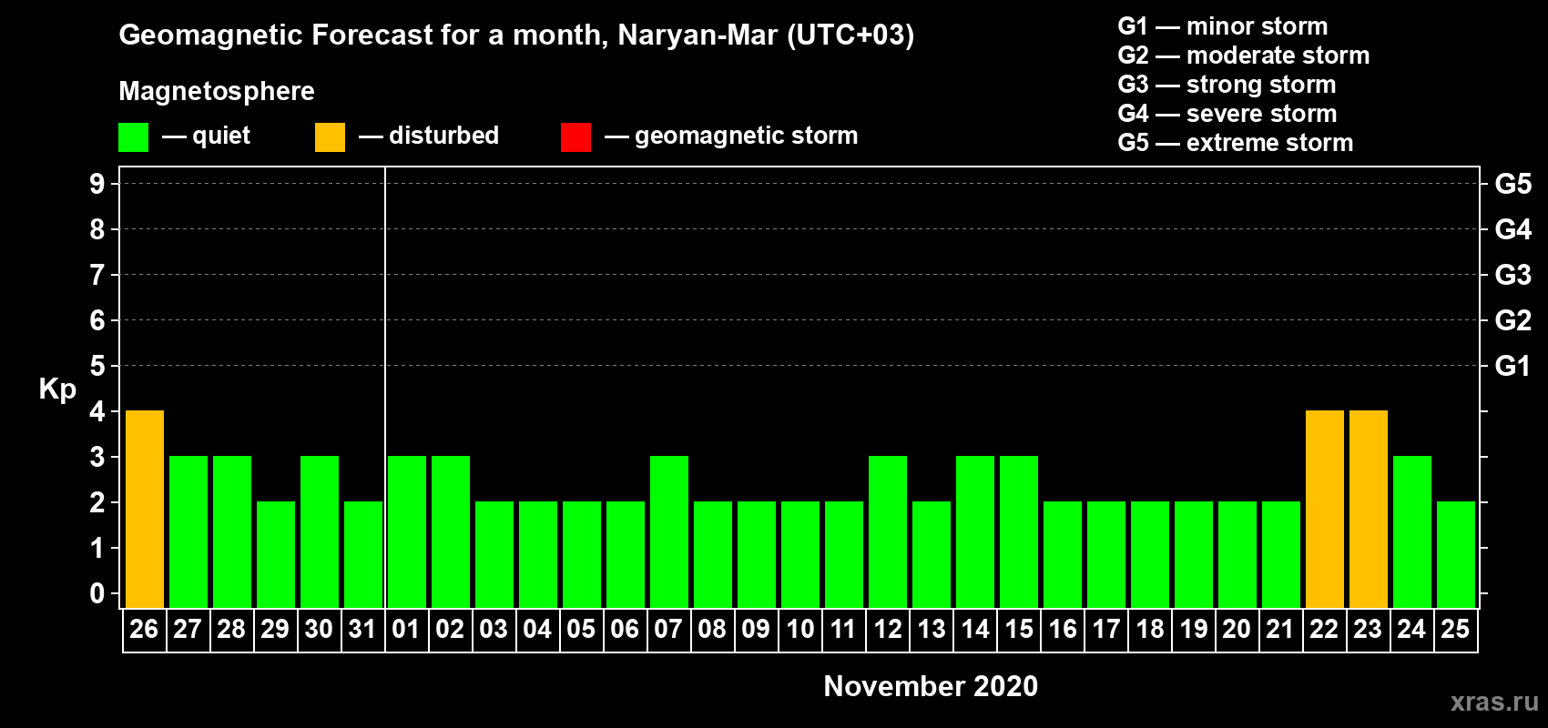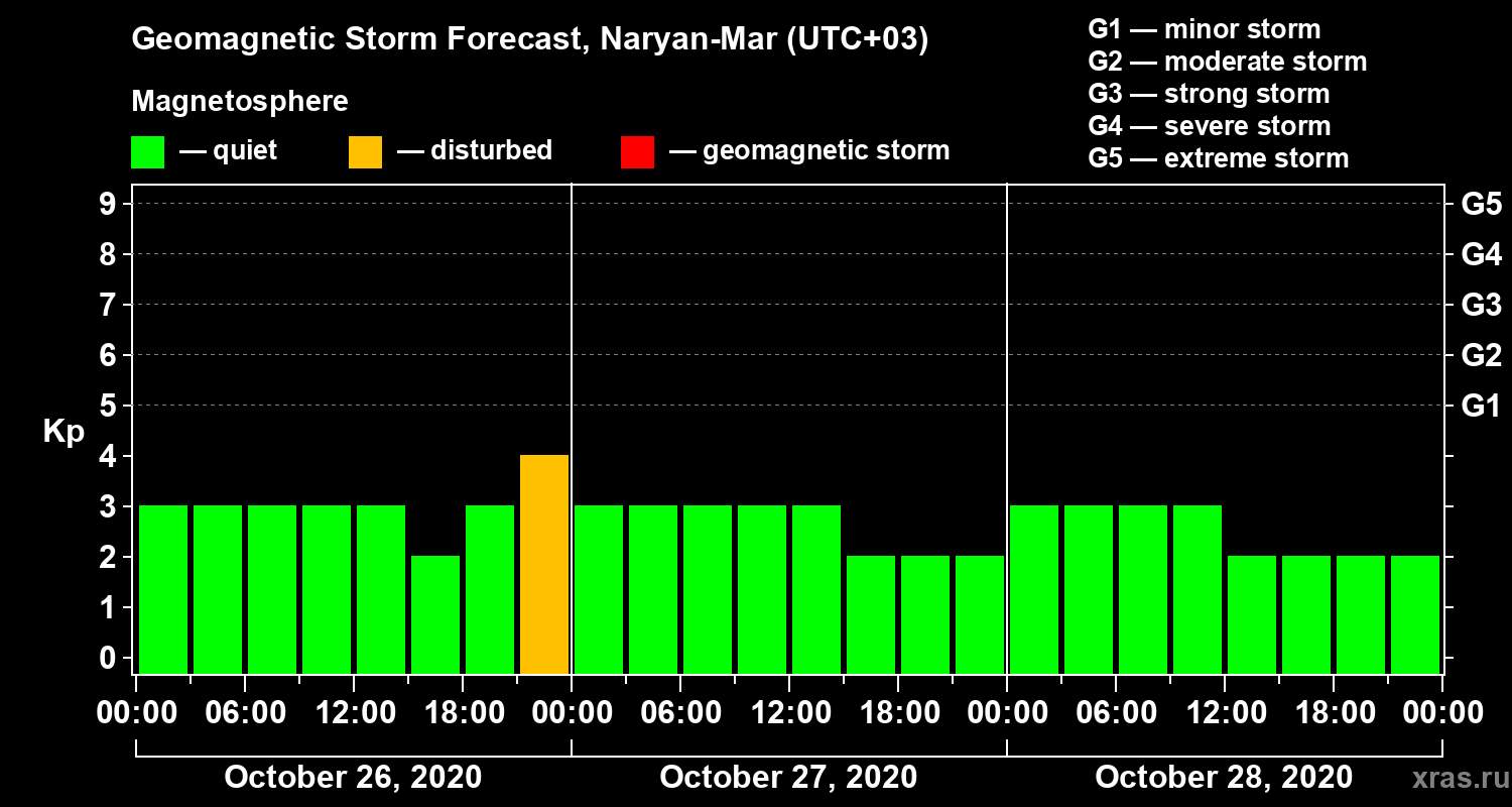 Geomagnetic activity forecast in Naryan-Mar — Oct 26, 2020