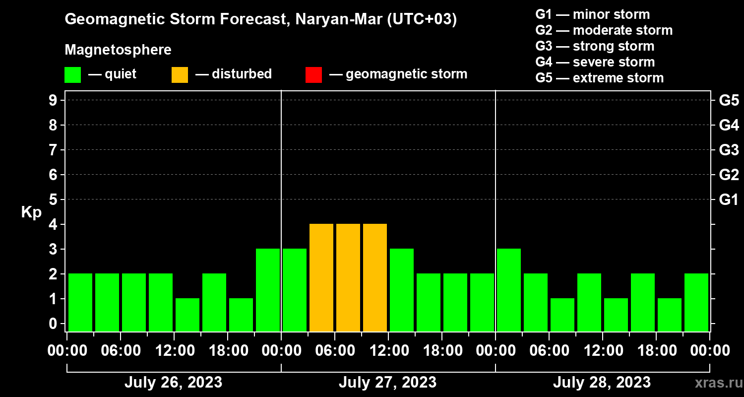 Geomagnetic activity forecast in Naryan-Mar — Jul 26, 2023