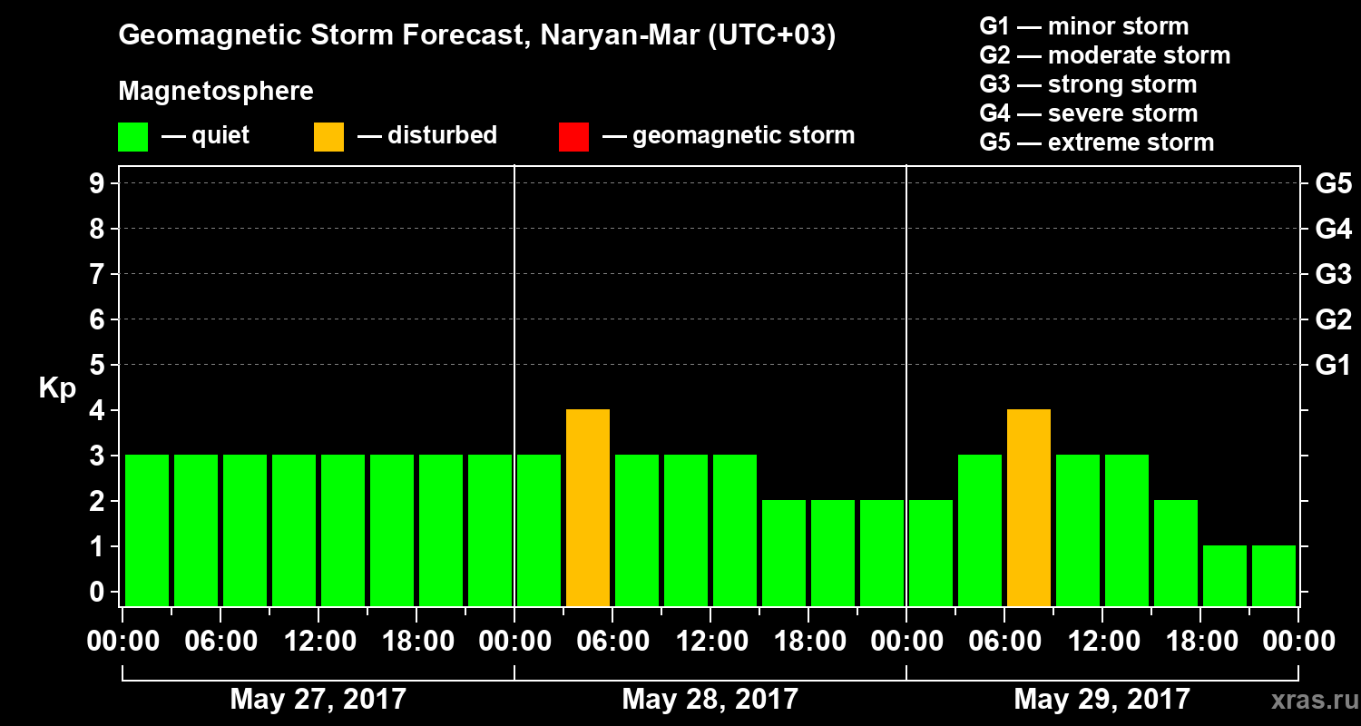 Geomagnetic activity forecast in Naryan-Mar — May 27, 2017
