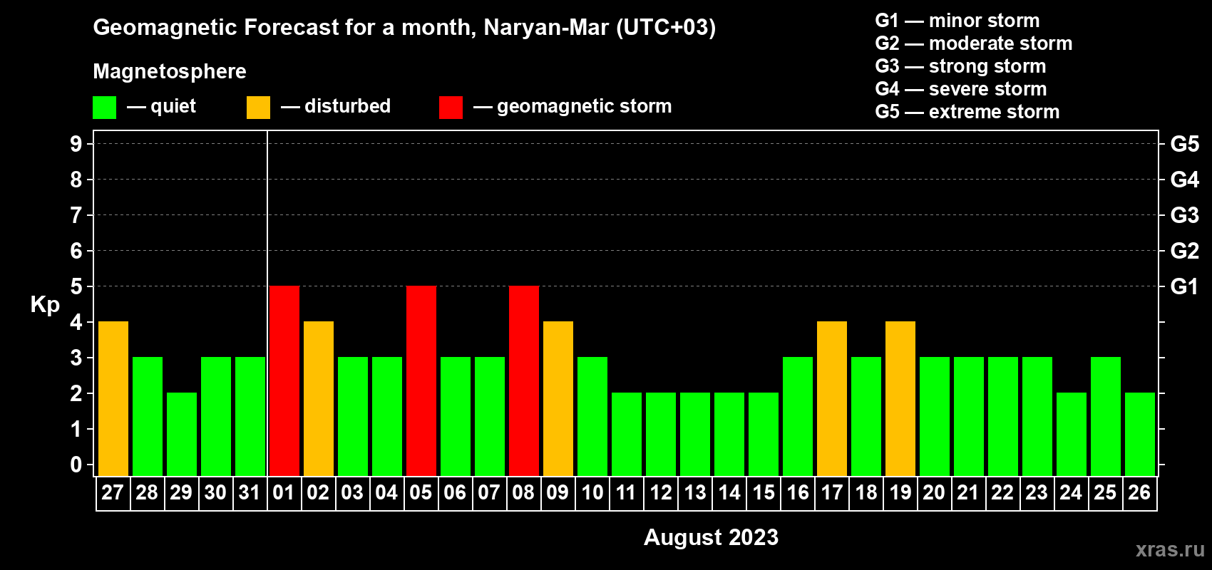Geomagnetic activity forecast in Naryan-Mar — Jul 27, 2023
