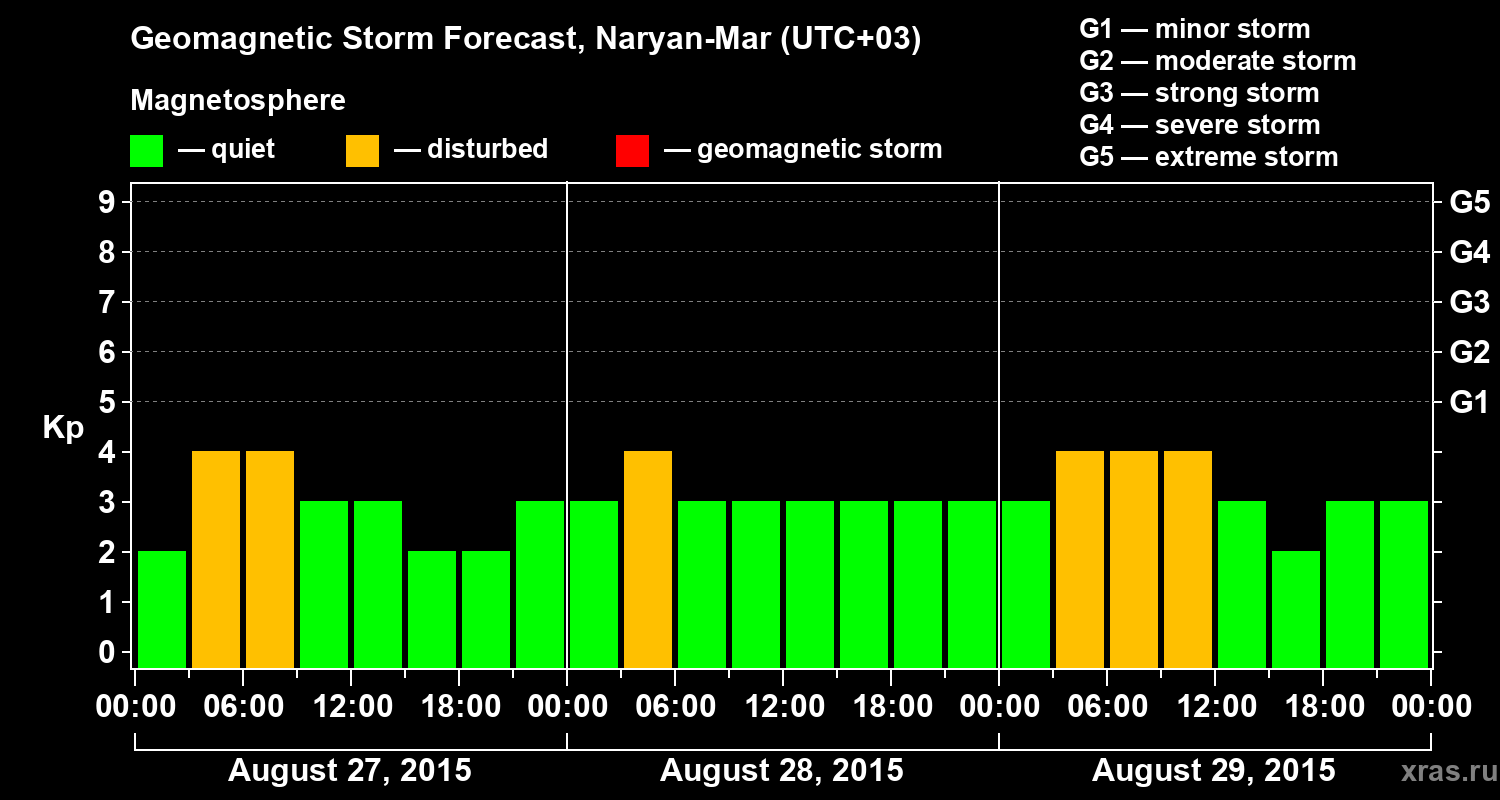 Geomagnetic storm forecast in Naryan-Mar for Aug 27, 2015