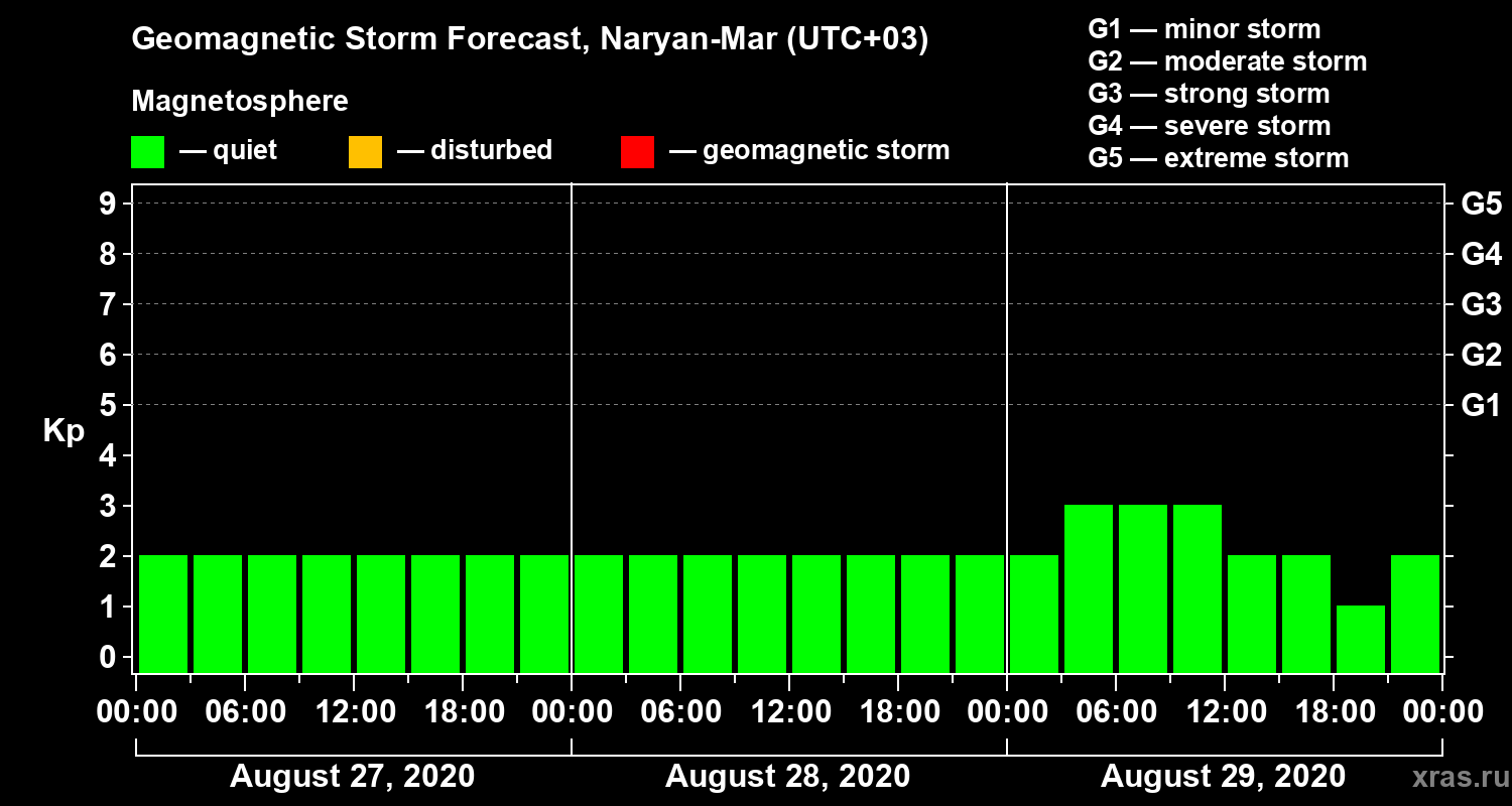 Geomagnetic storm forecast in Naryan-Mar for Aug 27, 2020