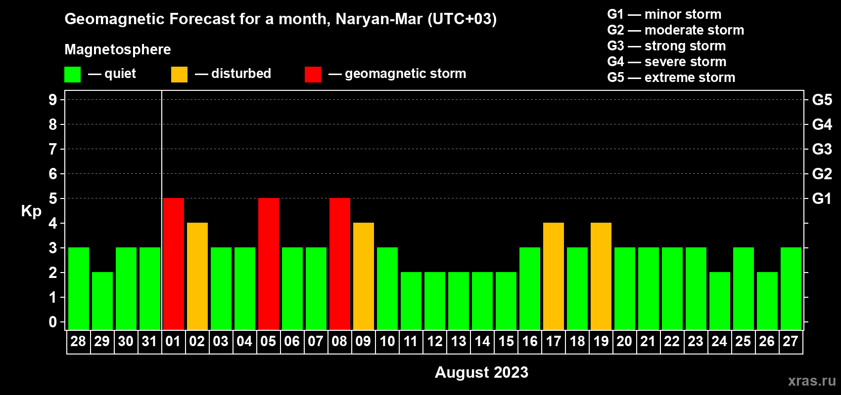 Geomagnetic activity forecast in Naryan-Mar — Jul 28, 2023