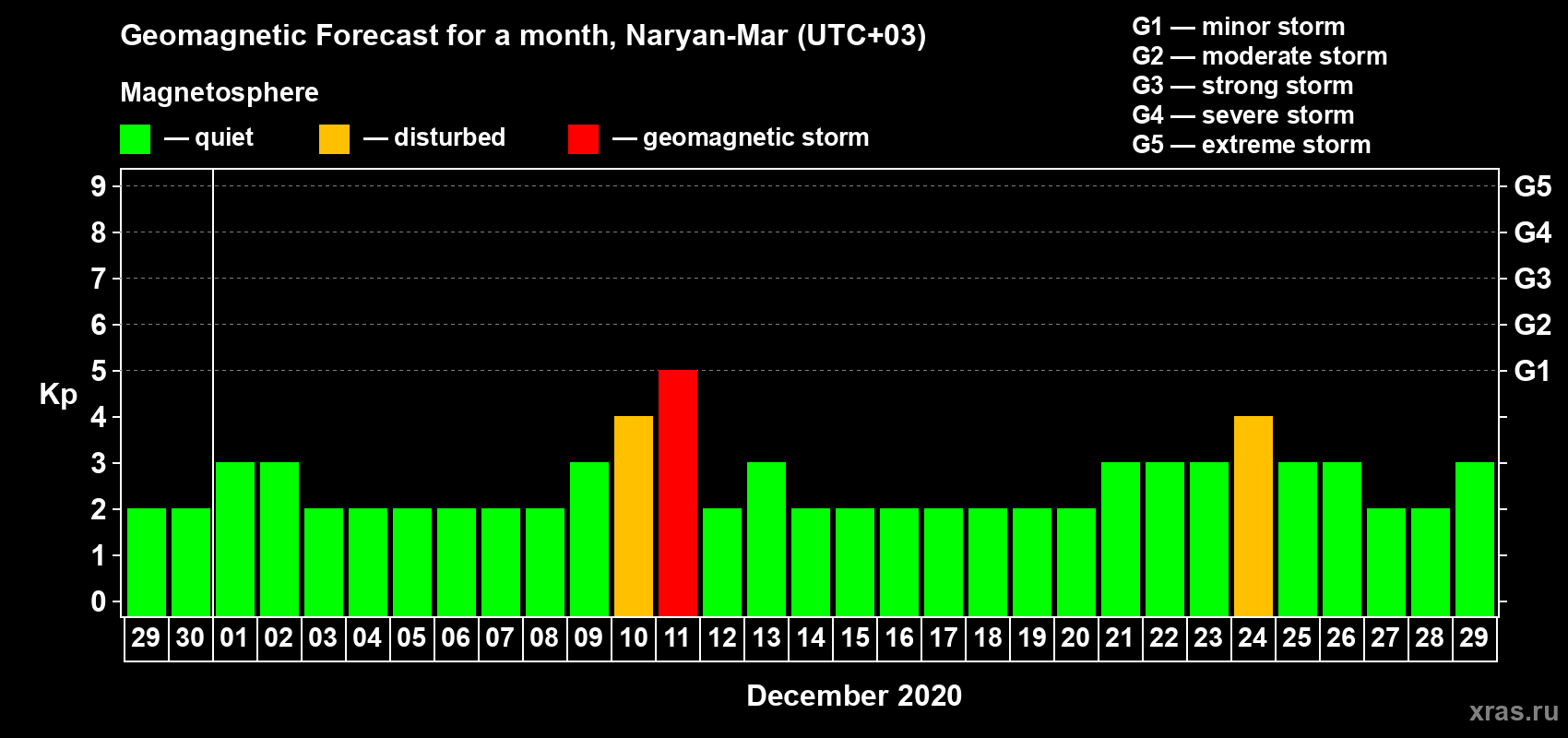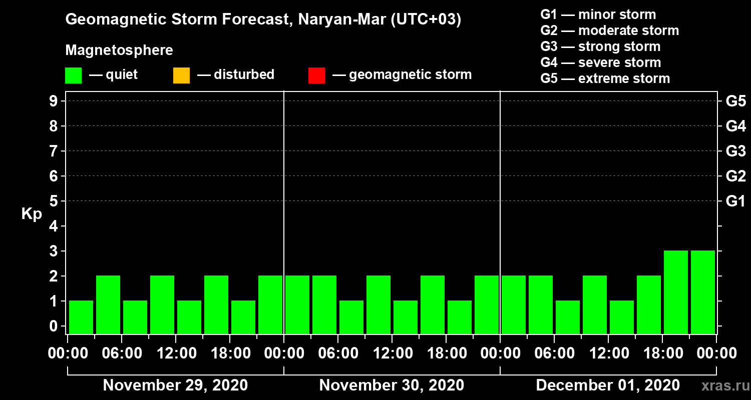Geomagnetic activity forecast in Naryan-Mar — Nov 29, 2020