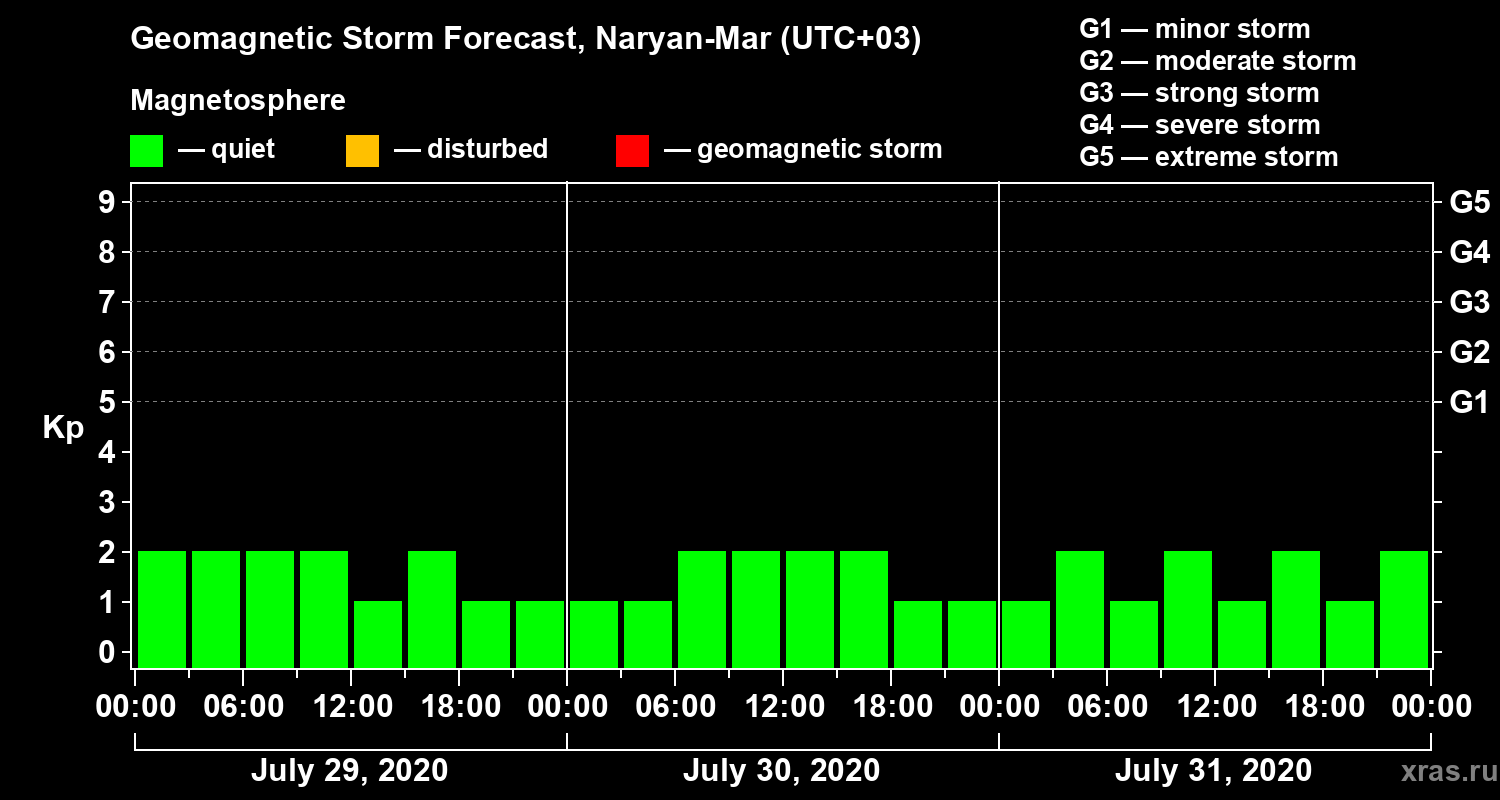 Geomagnetic storm forecast in Naryan-Mar for Jul 29, 2020