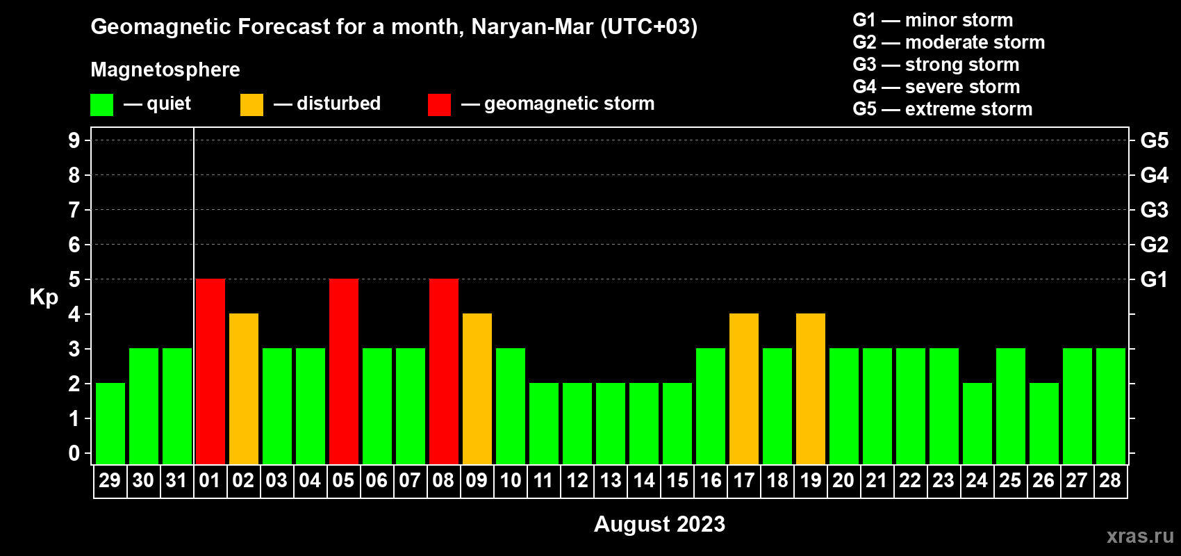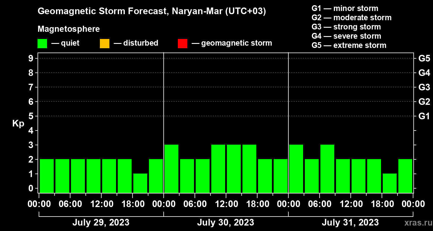 Geomagnetic activity forecast in Naryan-Mar — Jul 29, 2023