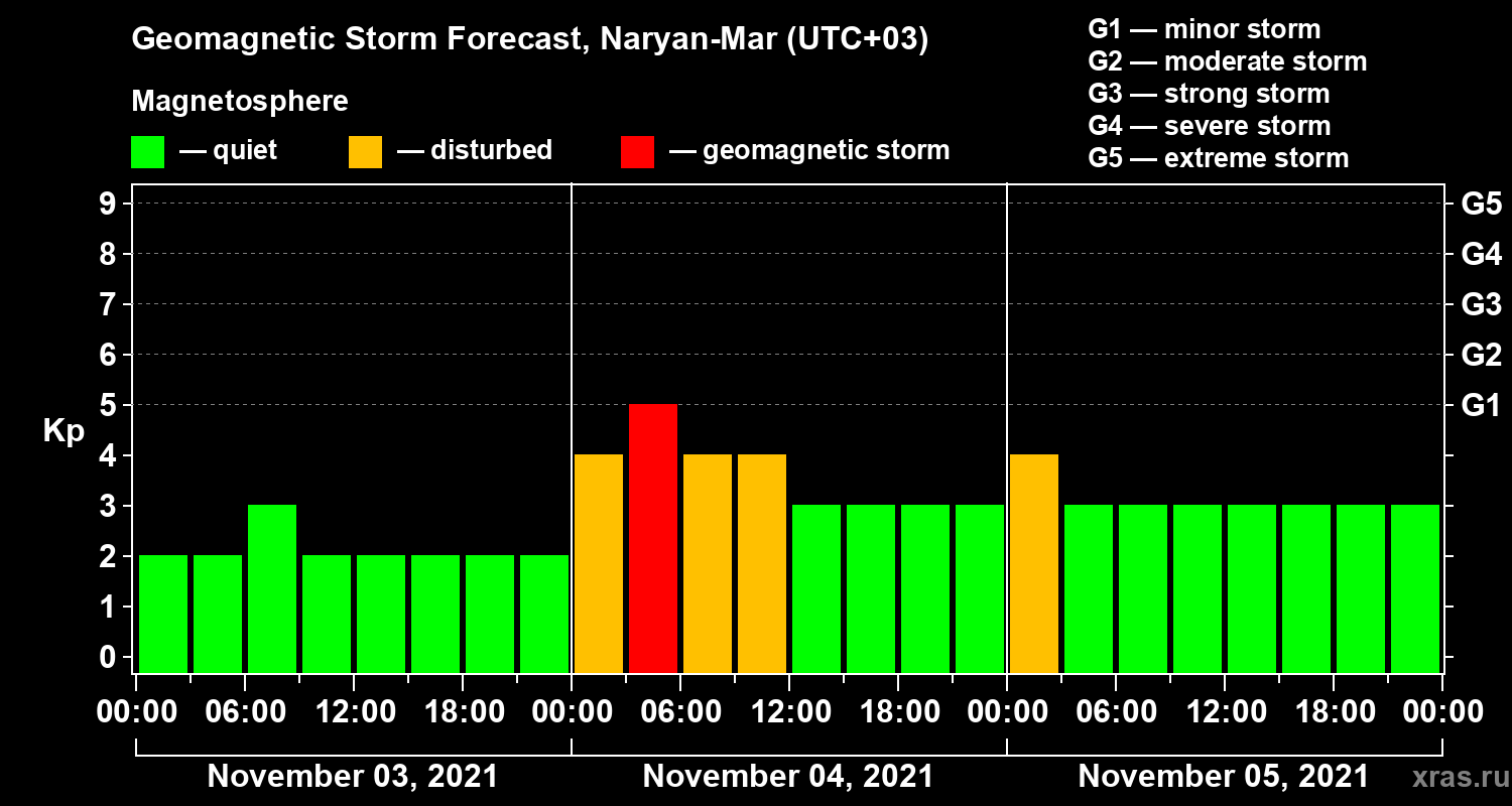Geomagnetic storm forecast in Naryan-Mar for Nov 03, 2021