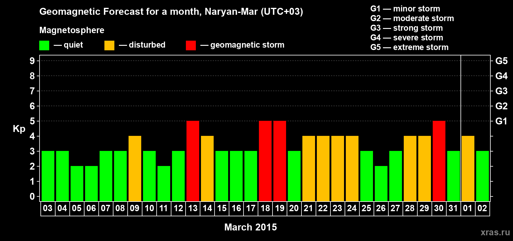 Geomagnetic storm forecast in Naryan-Mar for Mar 03, 2015
