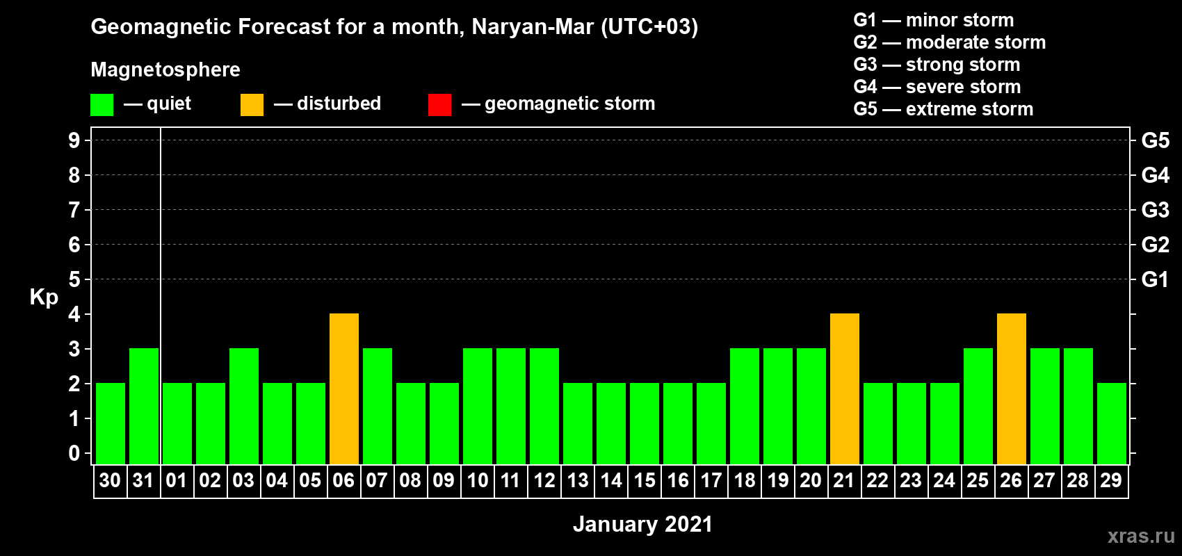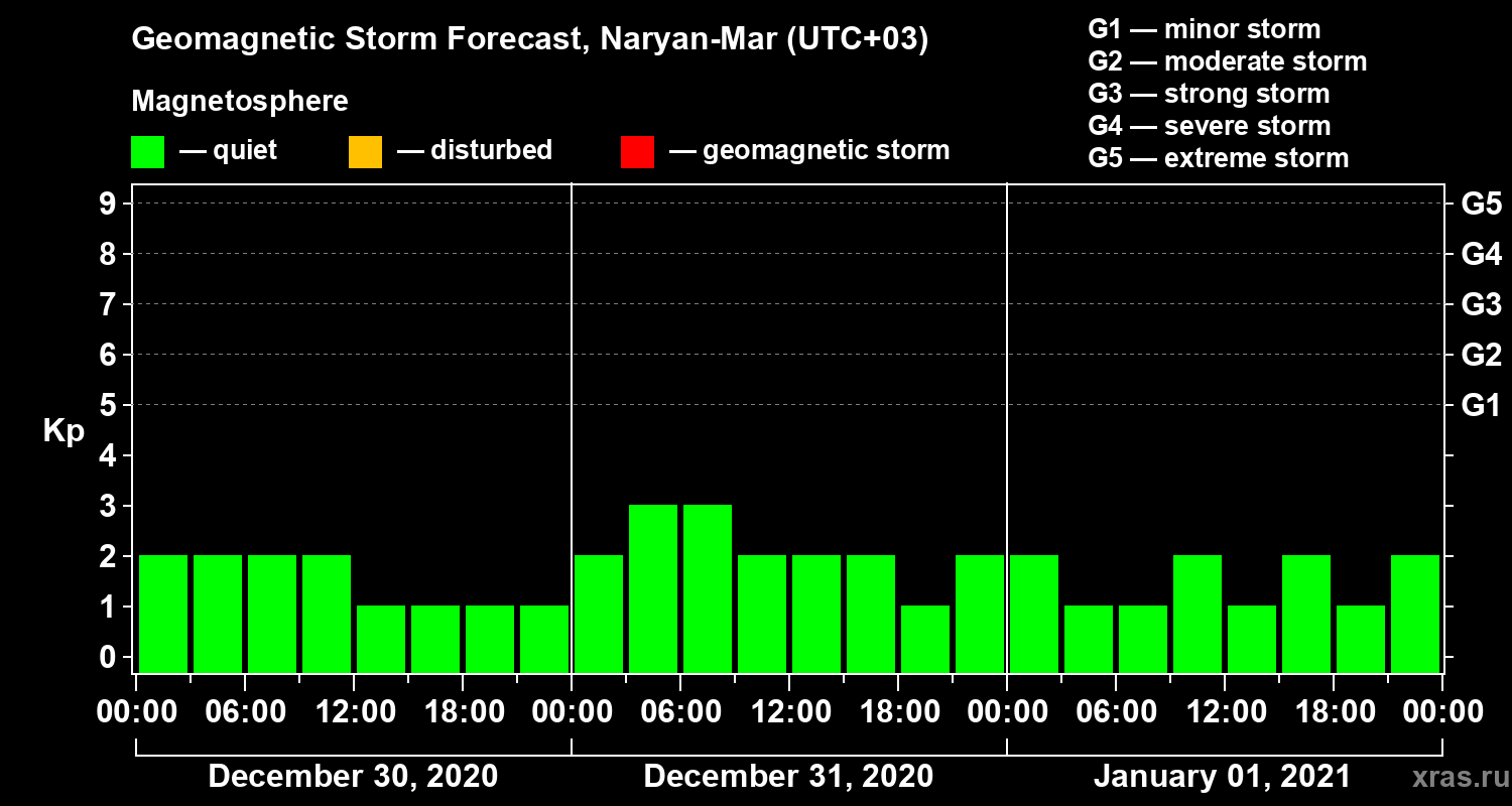 Geomagnetic activity forecast in Naryan-Mar — Dec 30, 2020