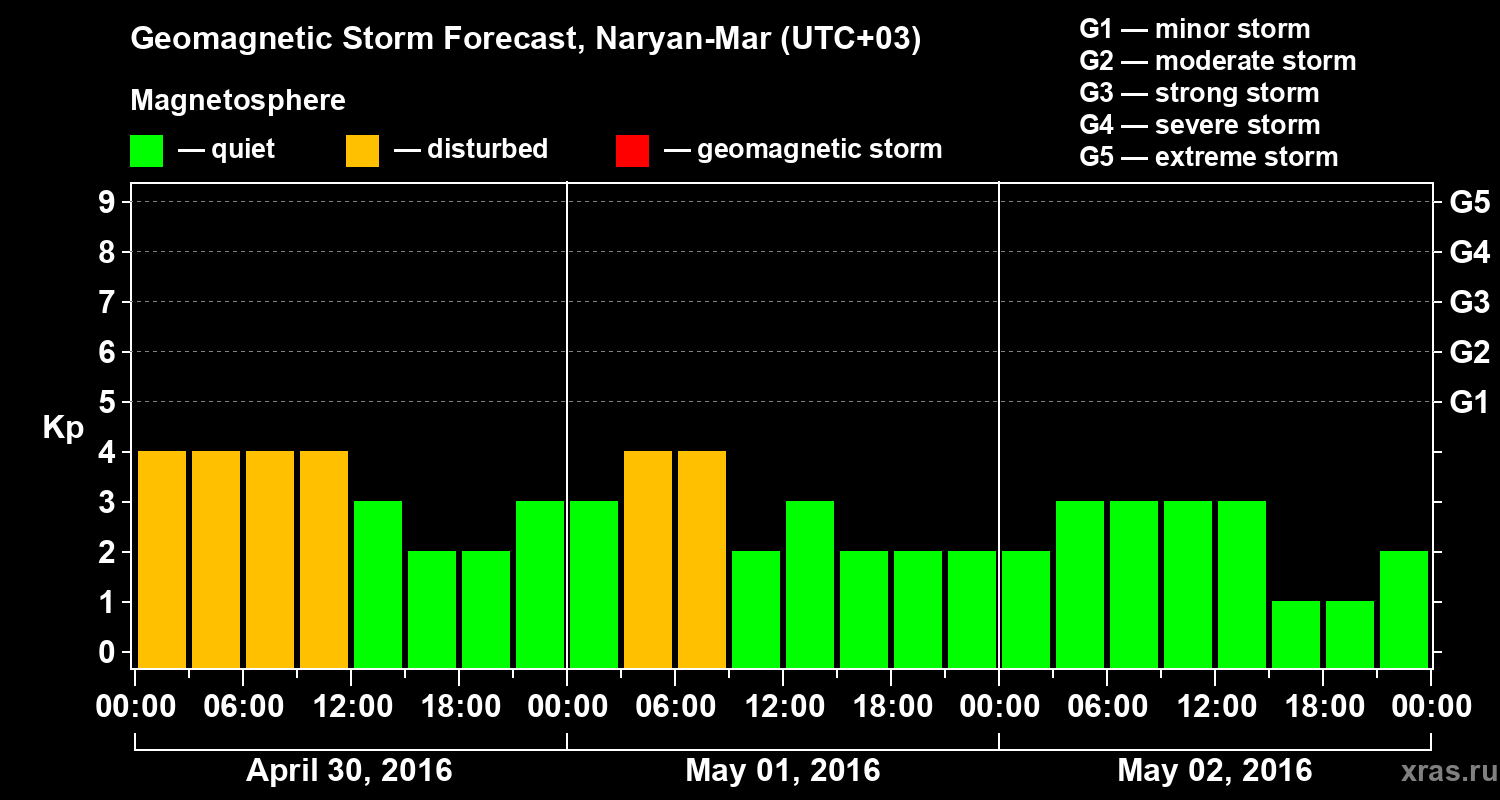 Geomagnetic activity forecast in Naryan-Mar — Apr 30, 2016