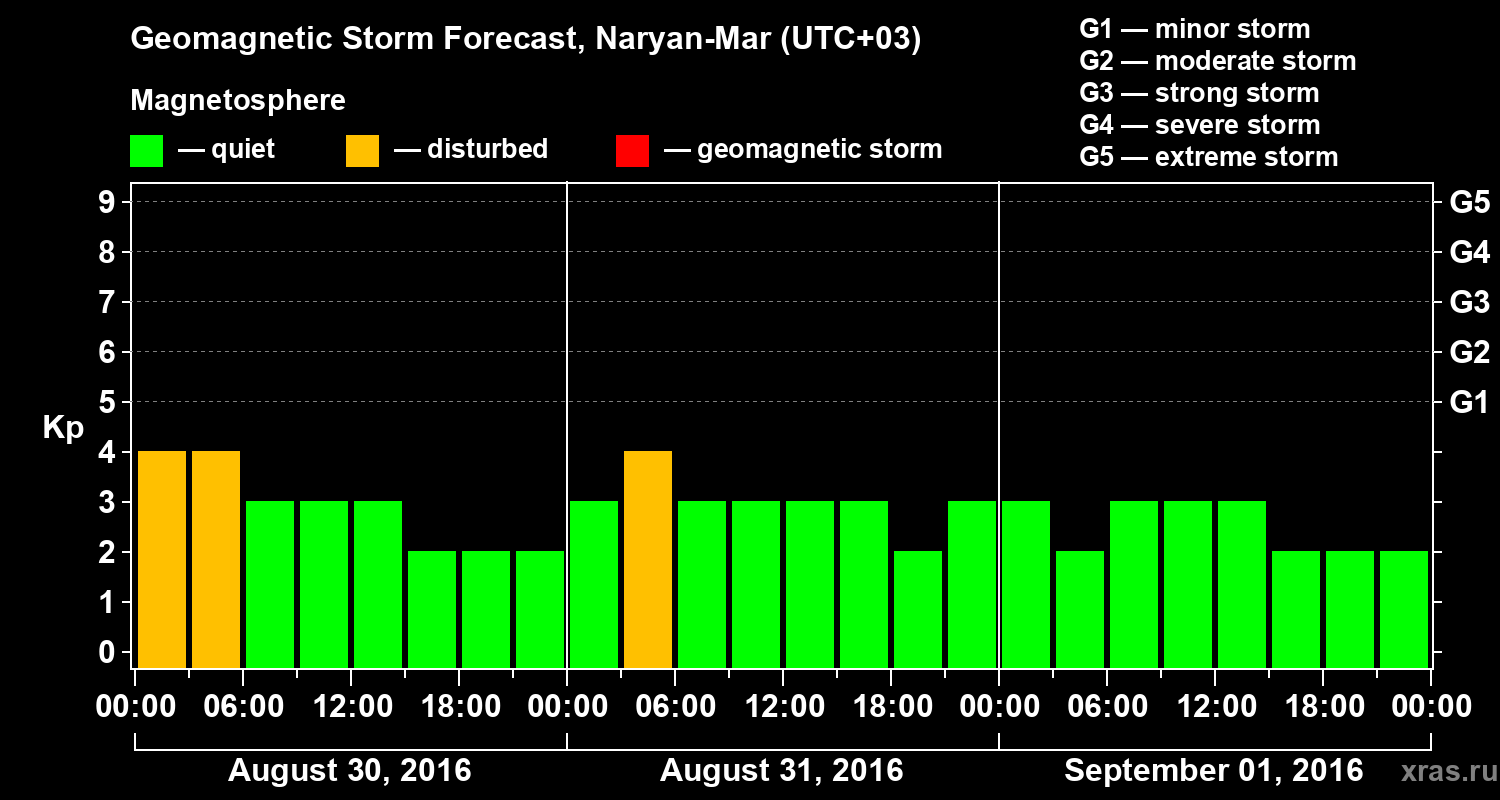 Geomagnetic activity forecast in Naryan-Mar — Aug 30, 2016