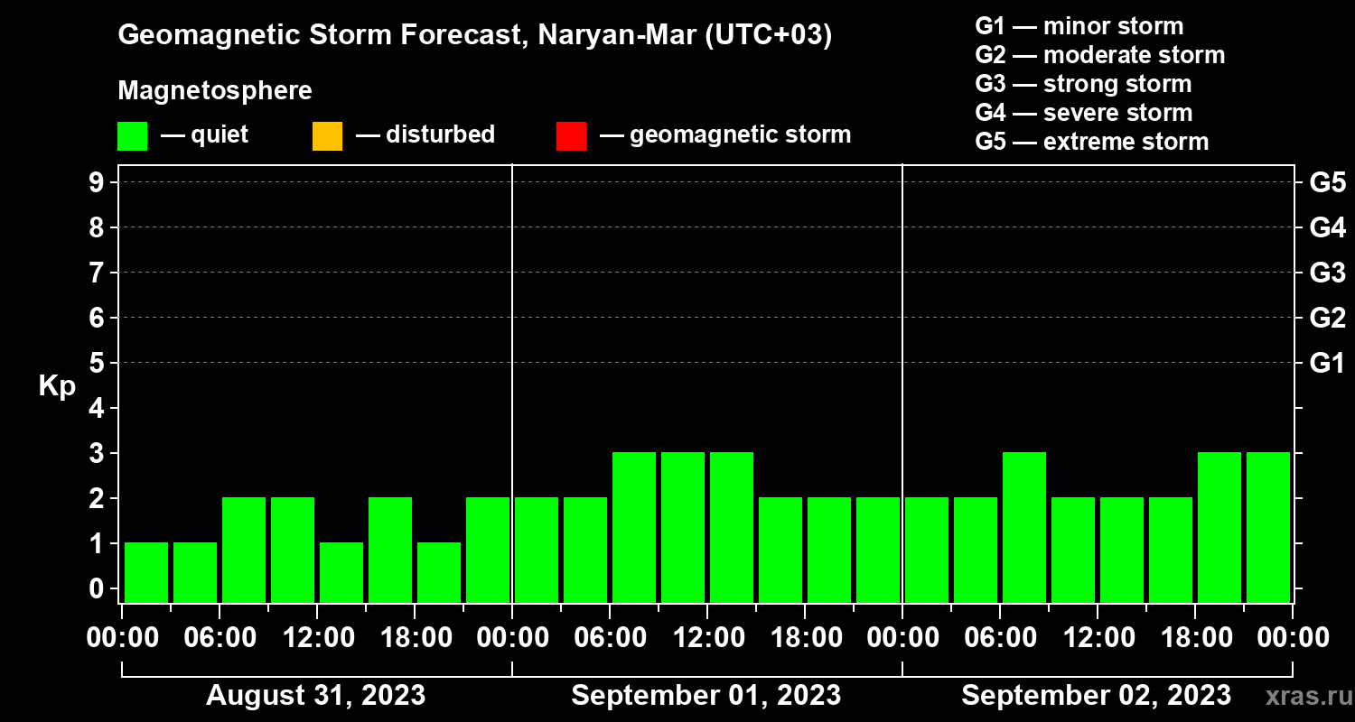 Geomagnetic activity forecast in Naryan-Mar — Aug 31, 2023