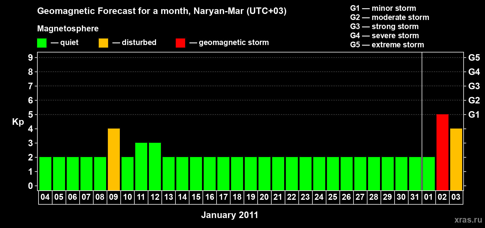 Geomagnetic storm forecast in Naryan-Mar for Jan 04, 2011