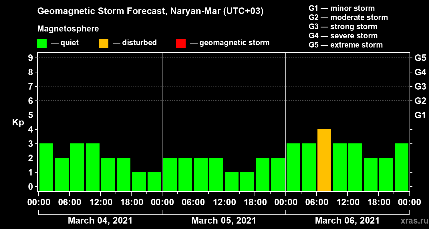 Geomagnetic storm forecast in Naryan-Mar for Mar 04, 2021