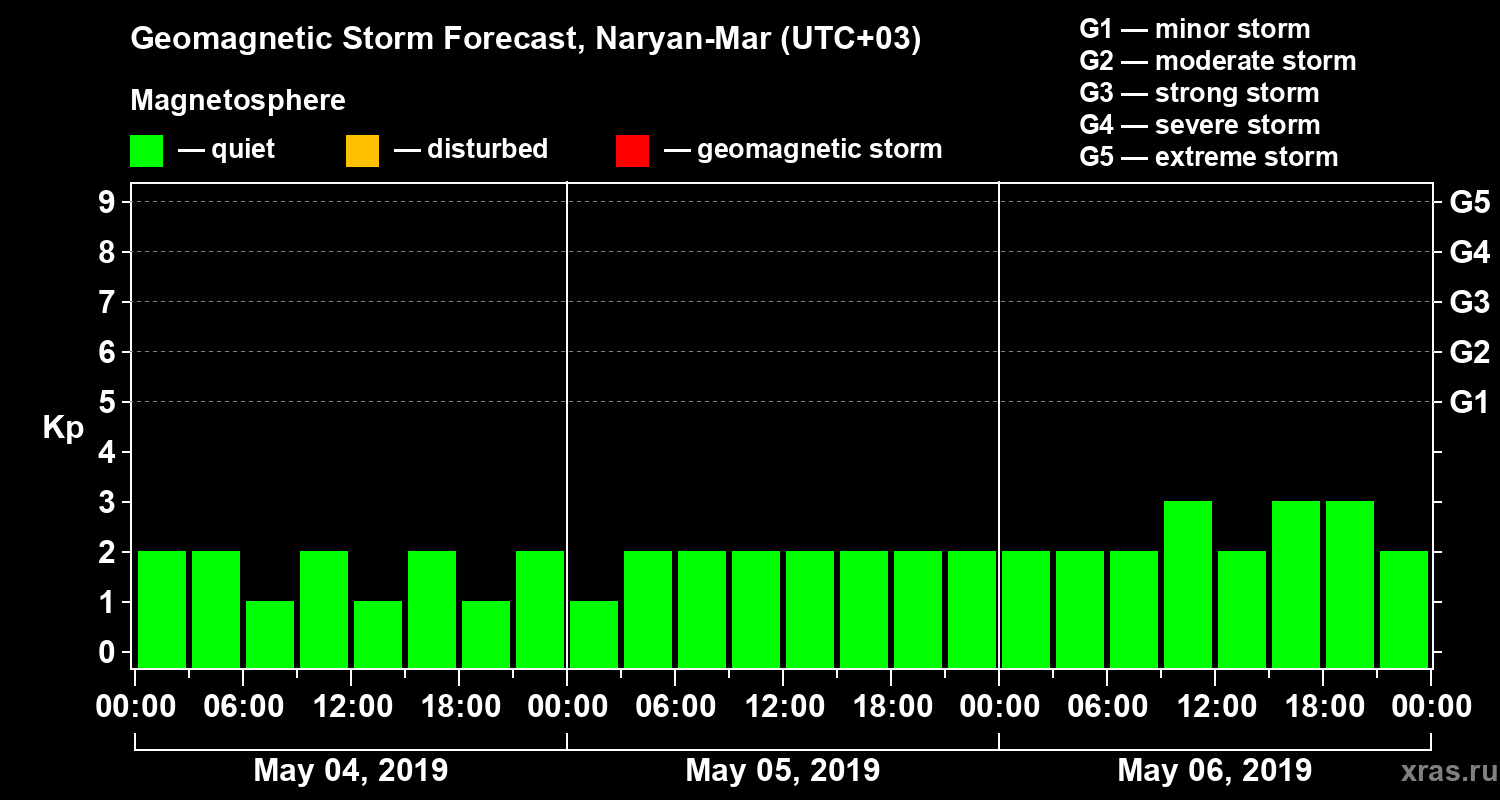 Geomagnetic storm forecast in Naryan-Mar for May 04, 2019