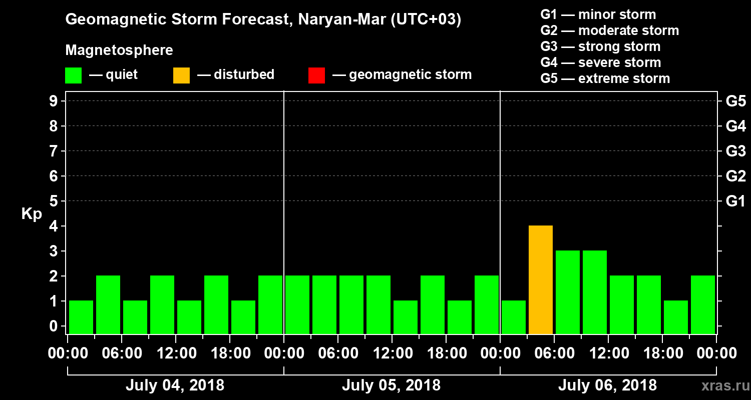 Geomagnetic activity forecast in Naryan-Mar — Jul 04, 2018