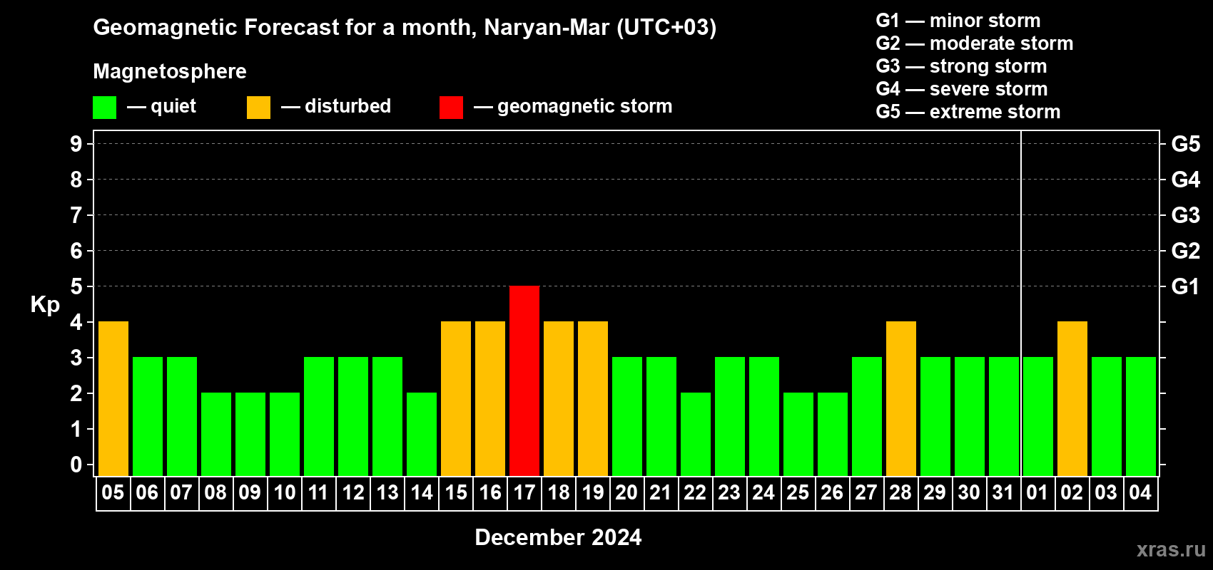 Geomagnetic activity forecast in Naryan-Mar — Dec 05, 2023
