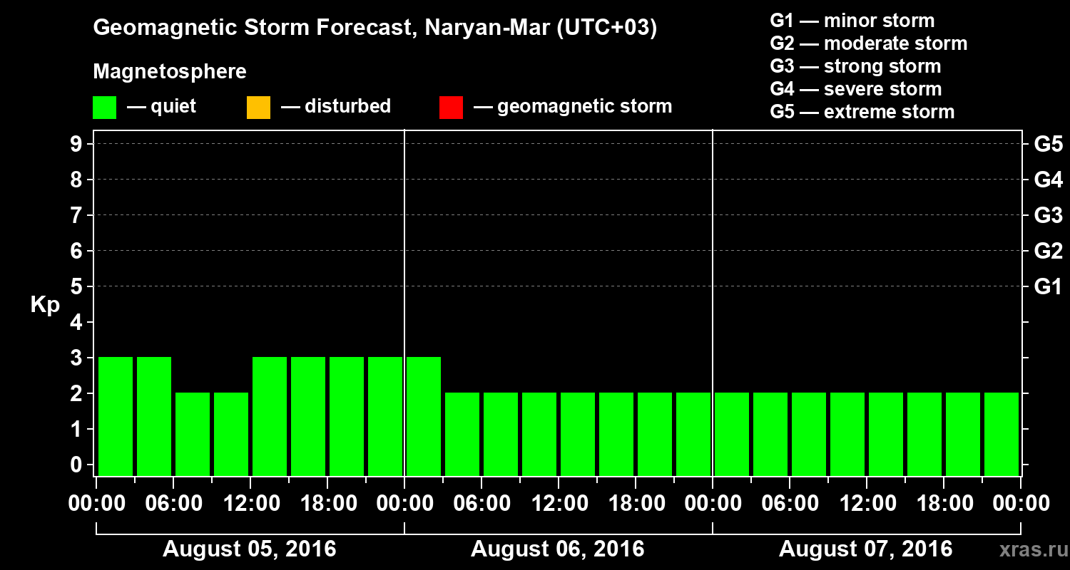Geomagnetic activity forecast in Naryan-Mar — Aug 05, 2016