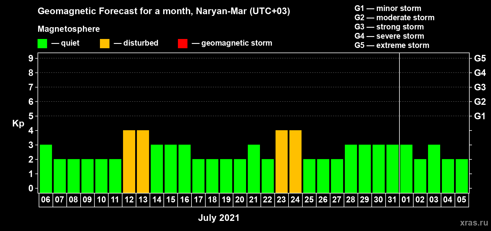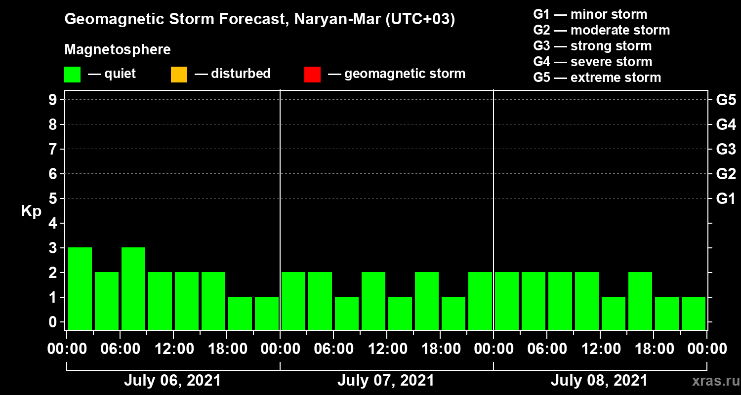 Geomagnetic storm forecast in Naryan-Mar for Jul 06, 2021