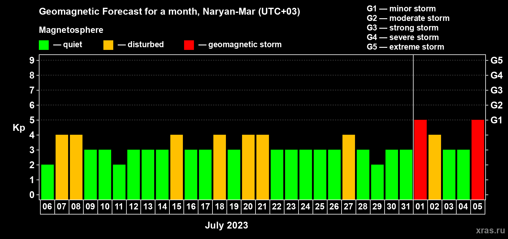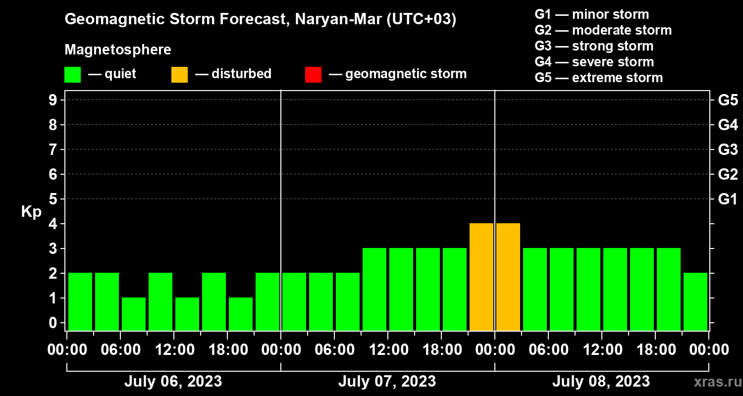 Geomagnetic storm forecast in Naryan-Mar for Jul 06, 2023