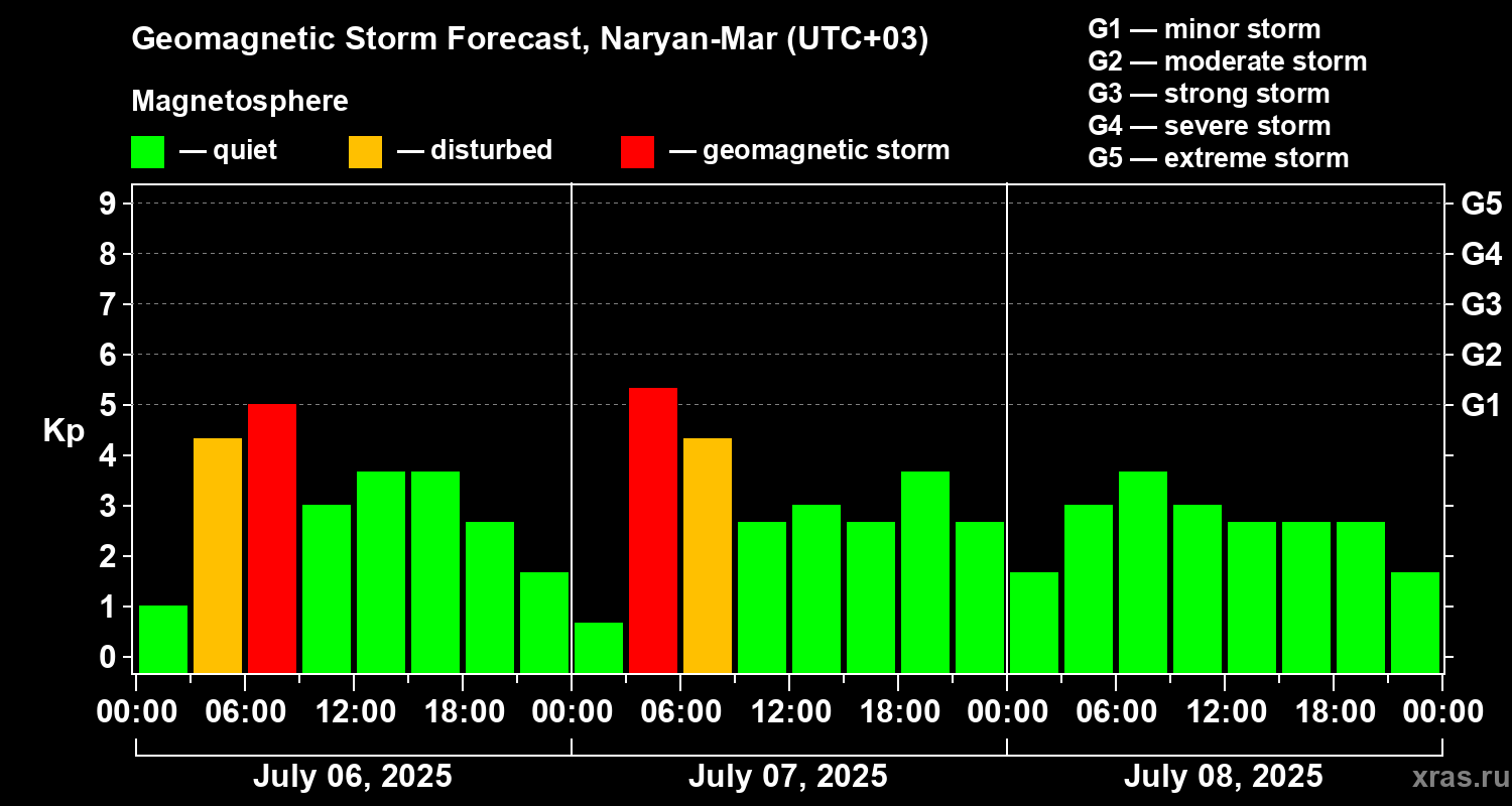 Geomagnetic storm forecast in Naryan-Mar for Jul 06, 2025