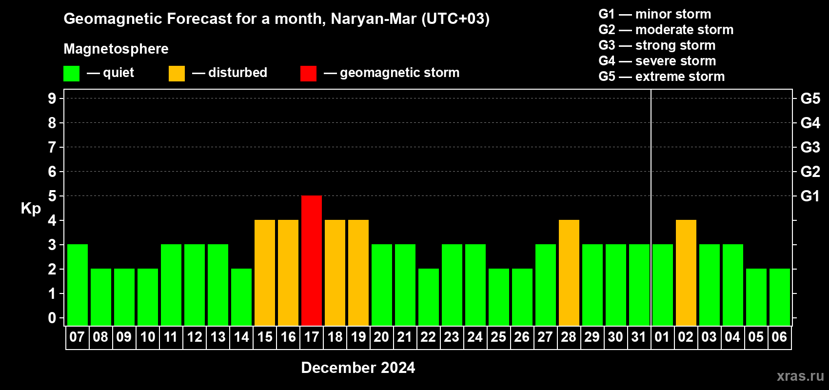 Geomagnetic activity forecast in Naryan-Mar — Dec 07, 2023