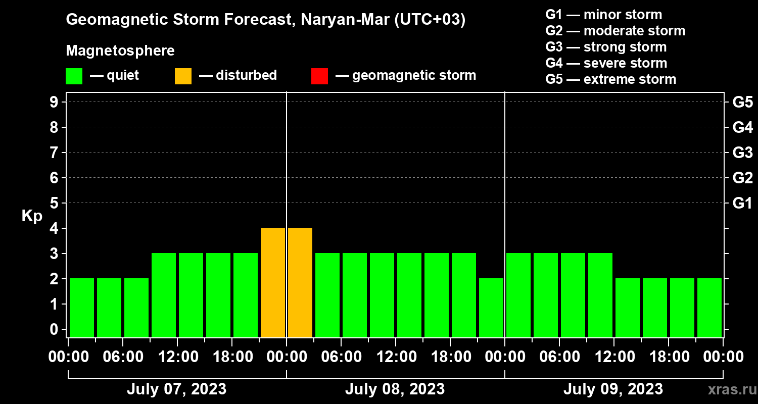 Geomagnetic activity forecast in Naryan-Mar — Jul 07, 2023