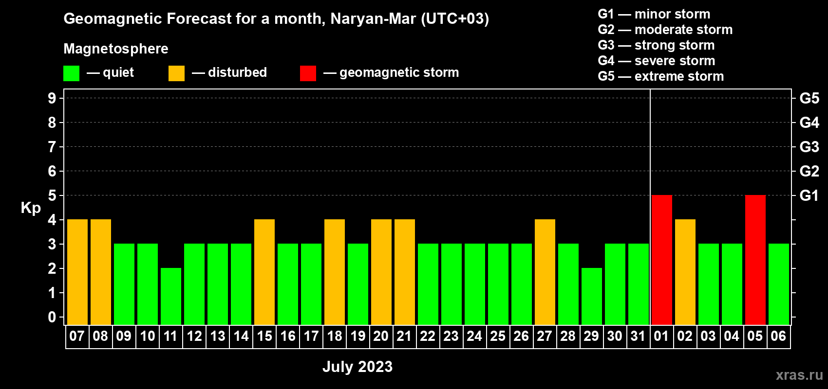 Geomagnetic storm forecast in Naryan-Mar for Jul 07, 2023