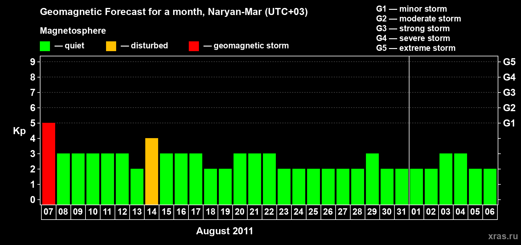 Geomagnetic storm forecast in Naryan-Mar for Aug 07, 2011