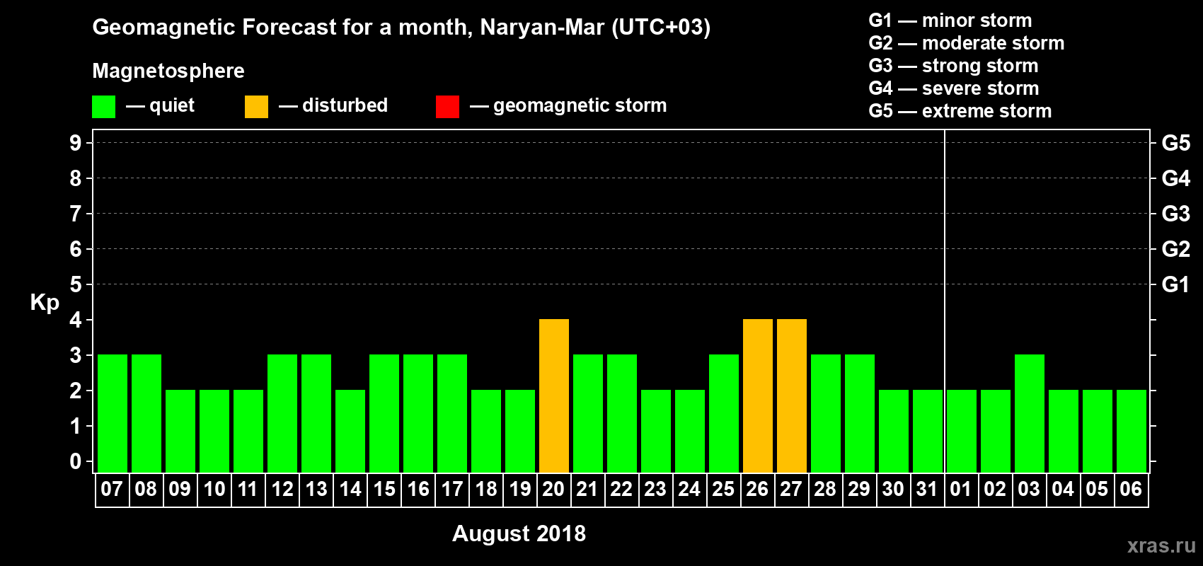 Geomagnetic activity forecast in Naryan-Mar — Aug 07, 2018