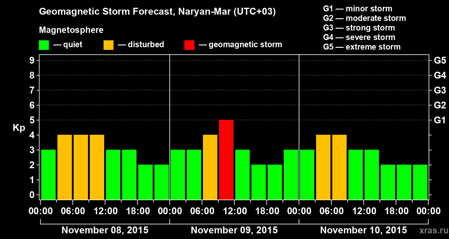 Geomagnetic activity forecast in Naryan-Mar — Nov 08, 2015