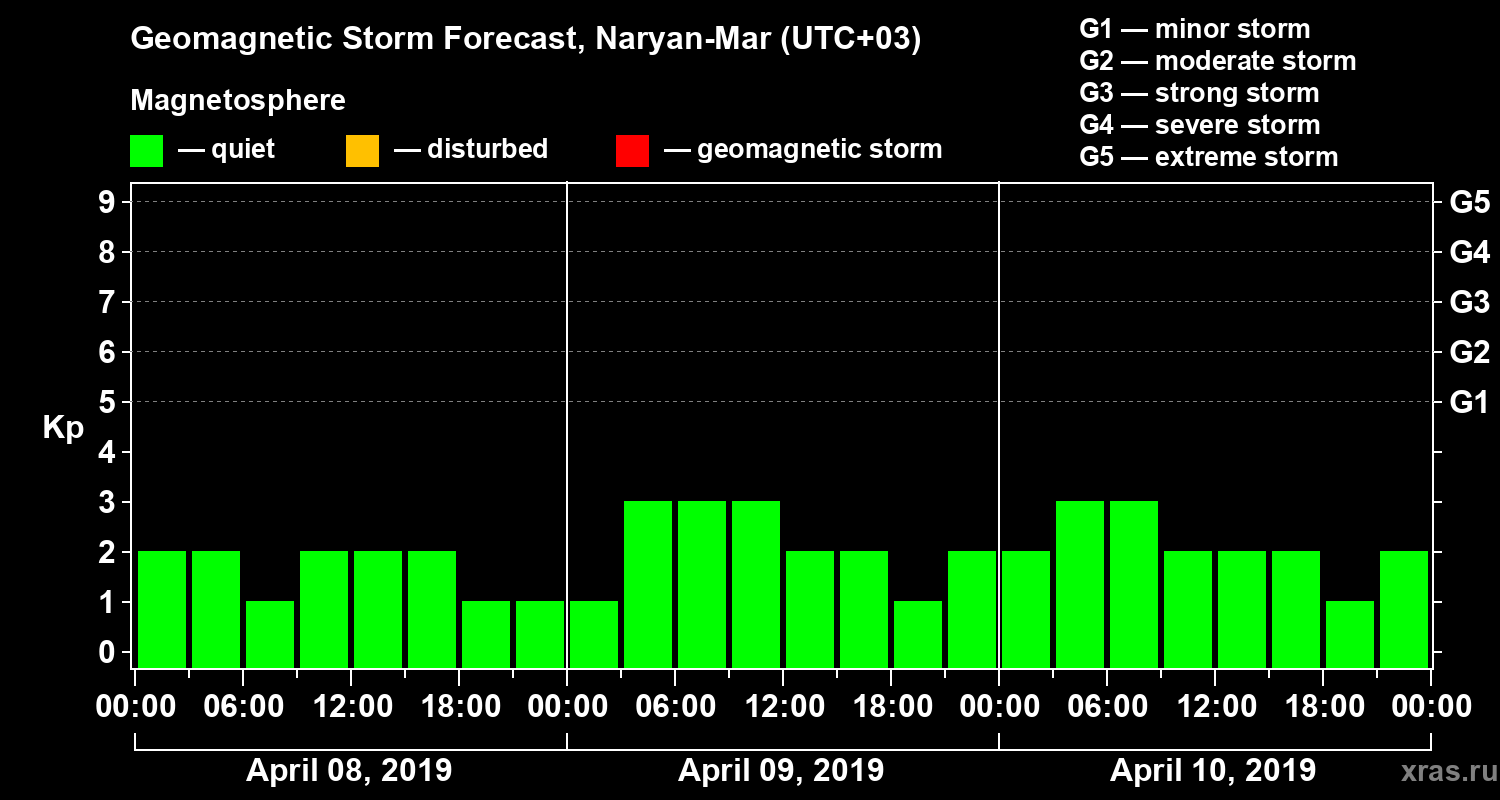 Geomagnetic storm forecast in Naryan-Mar for Apr 08, 2019