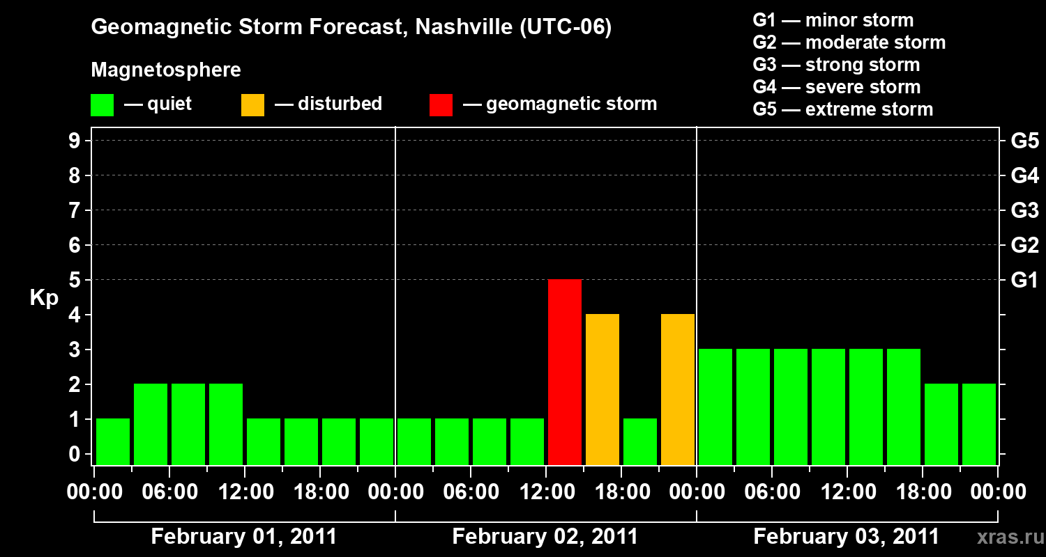 Geomagnetic storm forecast in Nashville for Feb 01, 2011