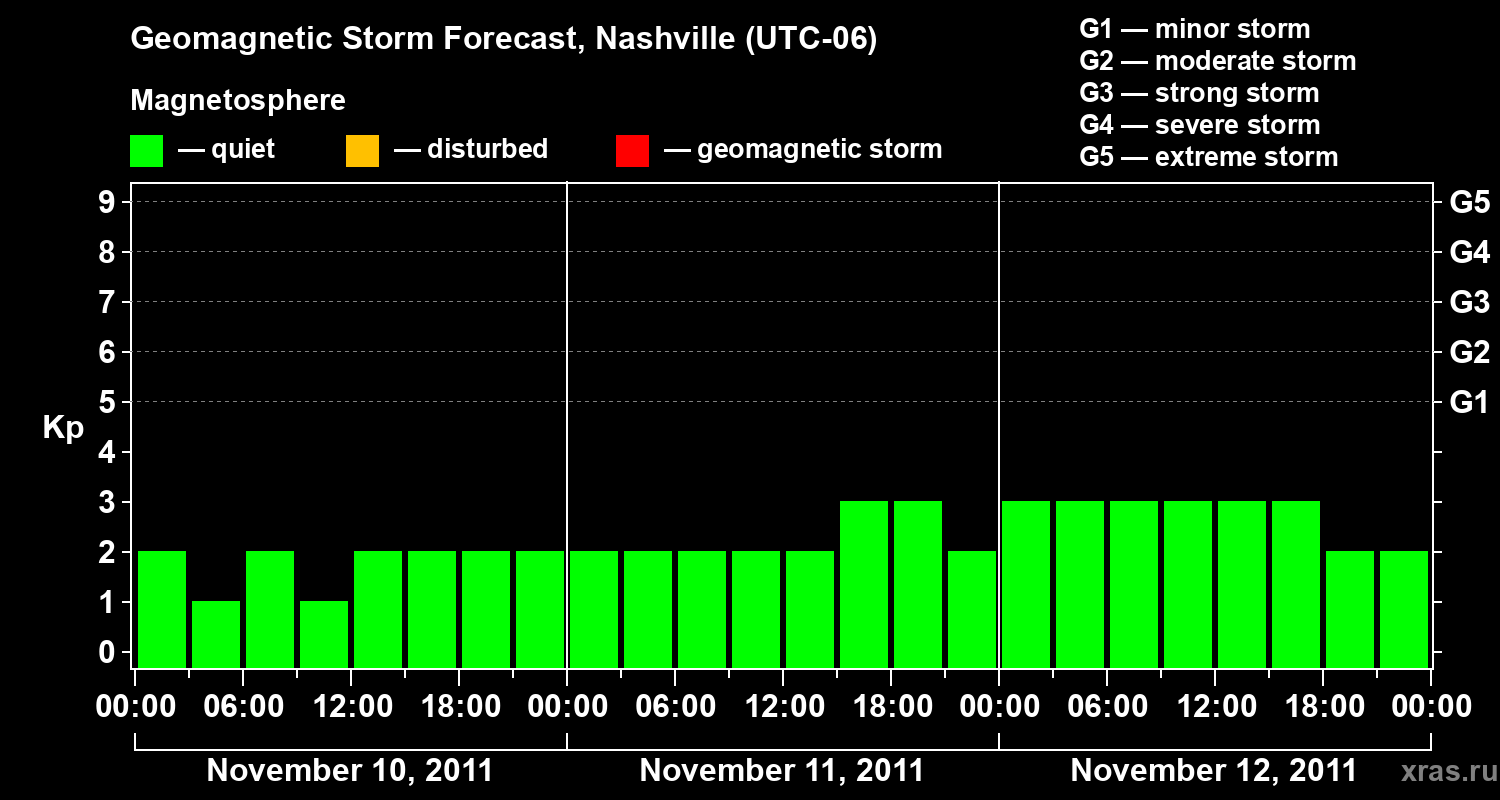 Geomagnetic storm forecast in Nashville for Nov 10, 2011