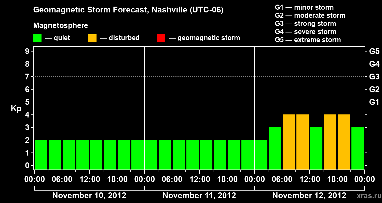Geomagnetic storm forecast in Nashville for Nov 10, 2012