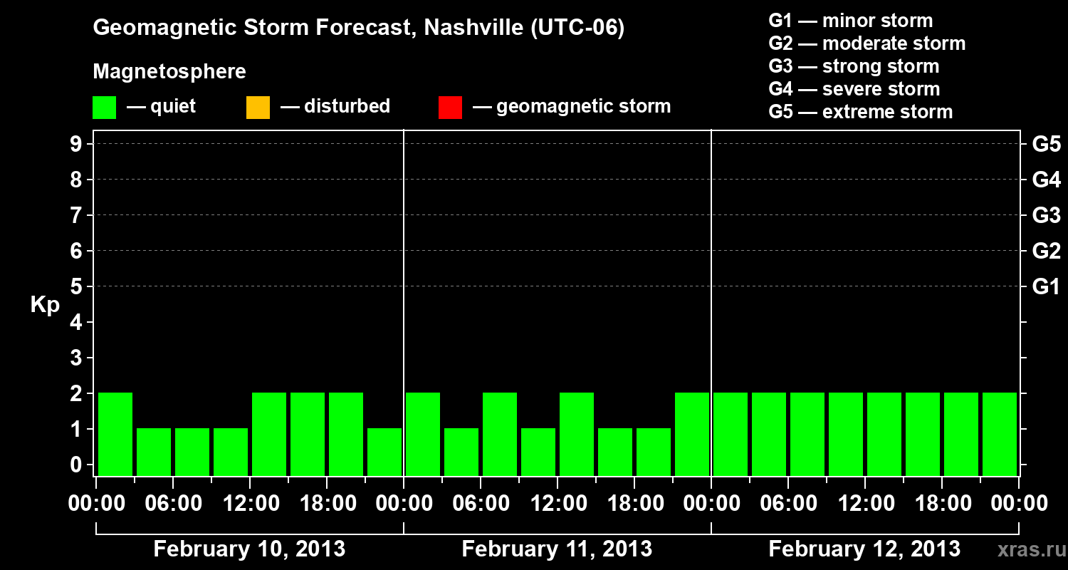 Geomagnetic storm forecast in Nashville for Feb 10, 2013