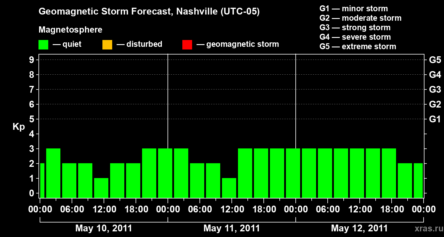 Geomagnetic storm forecast in Nashville for May 10, 2011