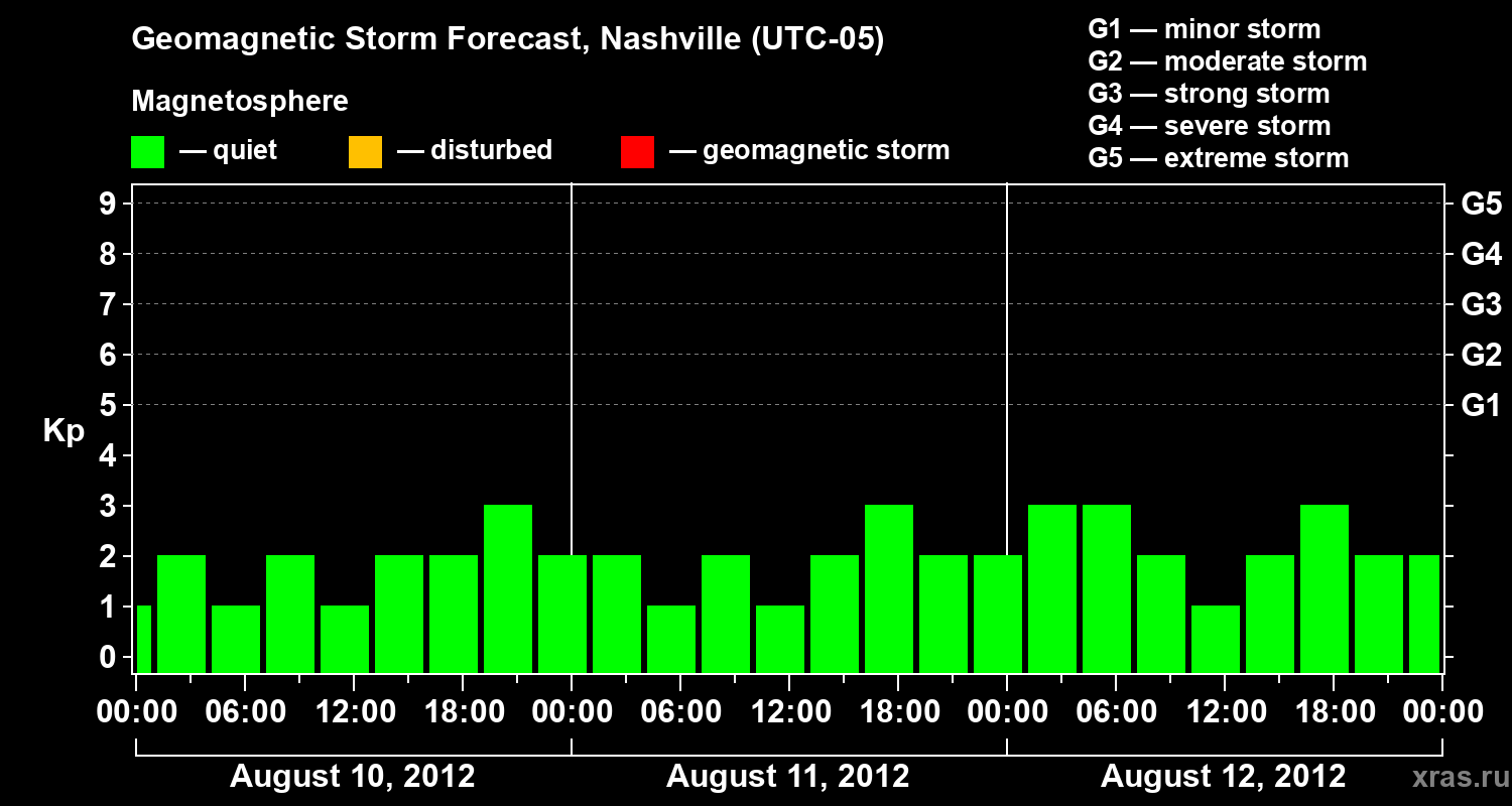 Geomagnetic storm forecast in Nashville for Aug 10, 2012