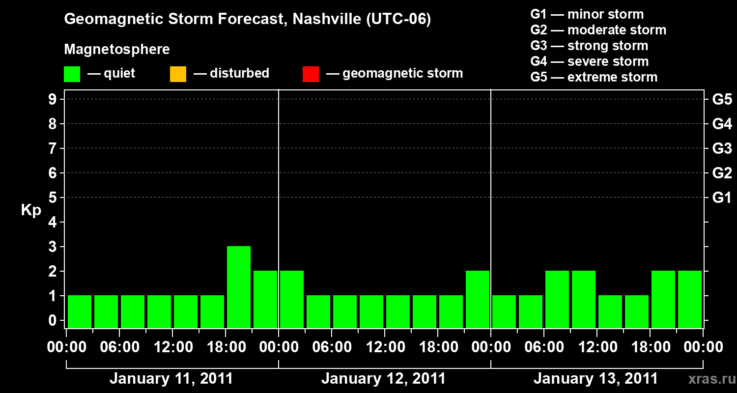 Geomagnetic storm forecast in Nashville for Jan 11, 2011